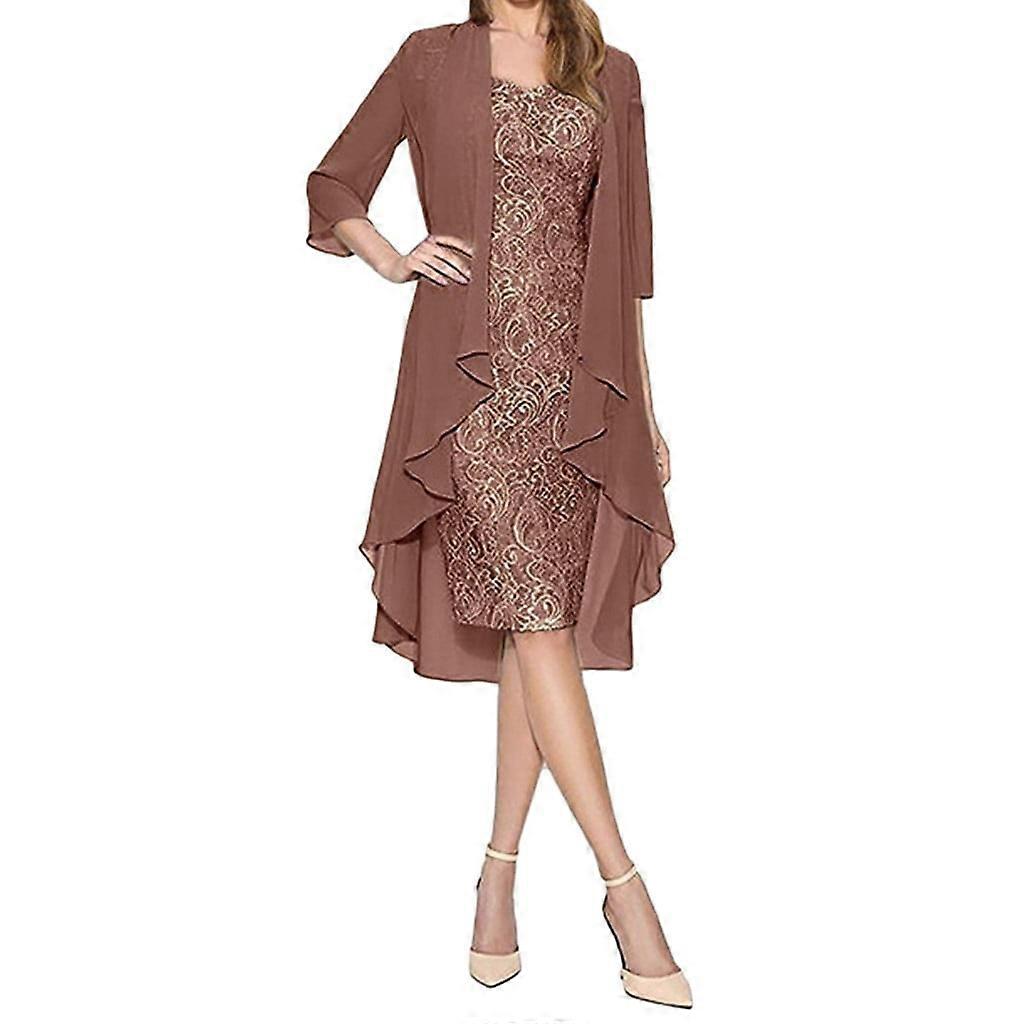 Ediodpoh Women's Fashion Two Pieces Charming Solid Color Mother of The Bride Lace Dress Wedding Guest Dresses Coffee XXXXL
