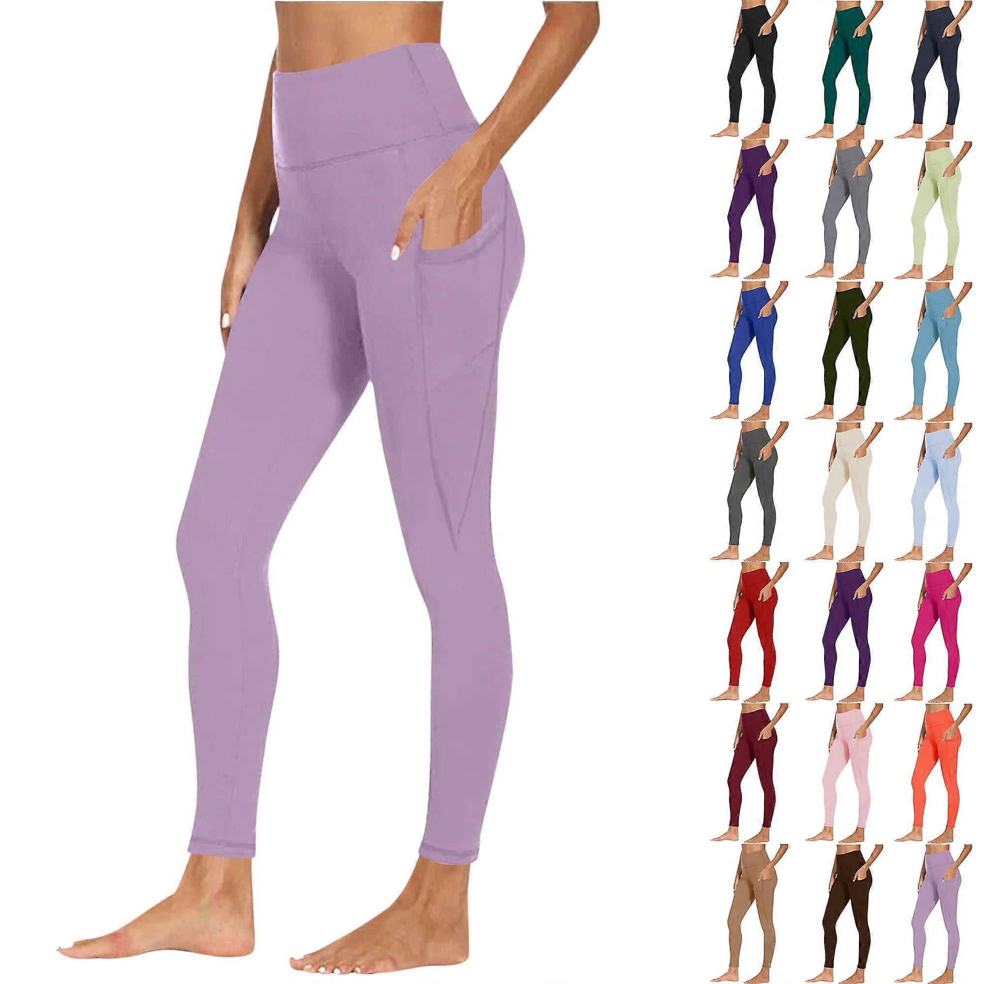 Women Elastic High Waist Yoga Pants Workout Out Pocket Leggings Fitness Sports Running Yoga Athletic Pants Purple M