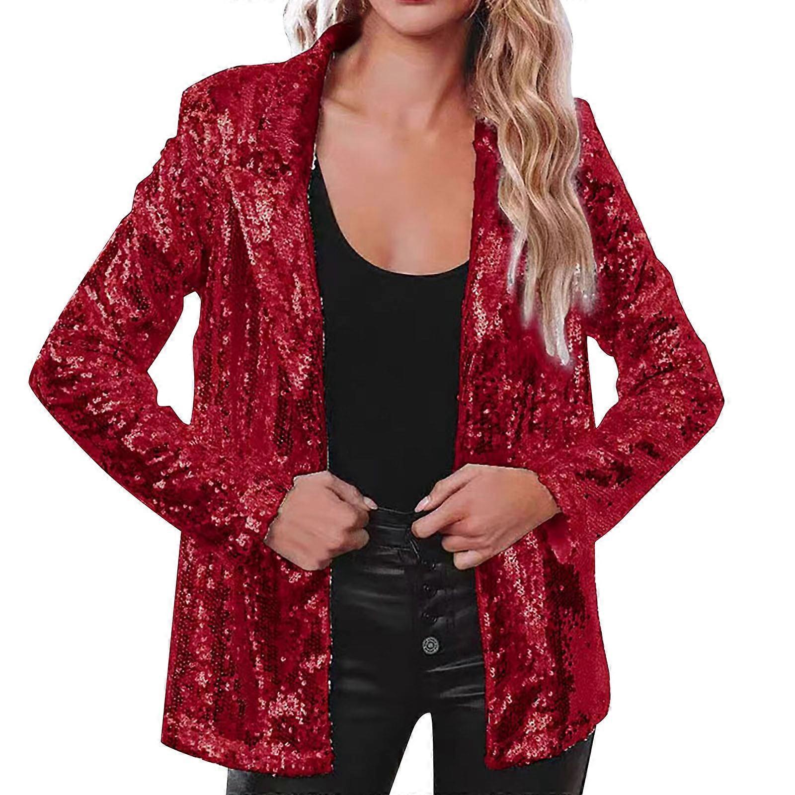 Clearance! Women's Large Size Sequin Long Coat, Shiny Lapel Rave Outerwear – Compatible with Plus Sizes