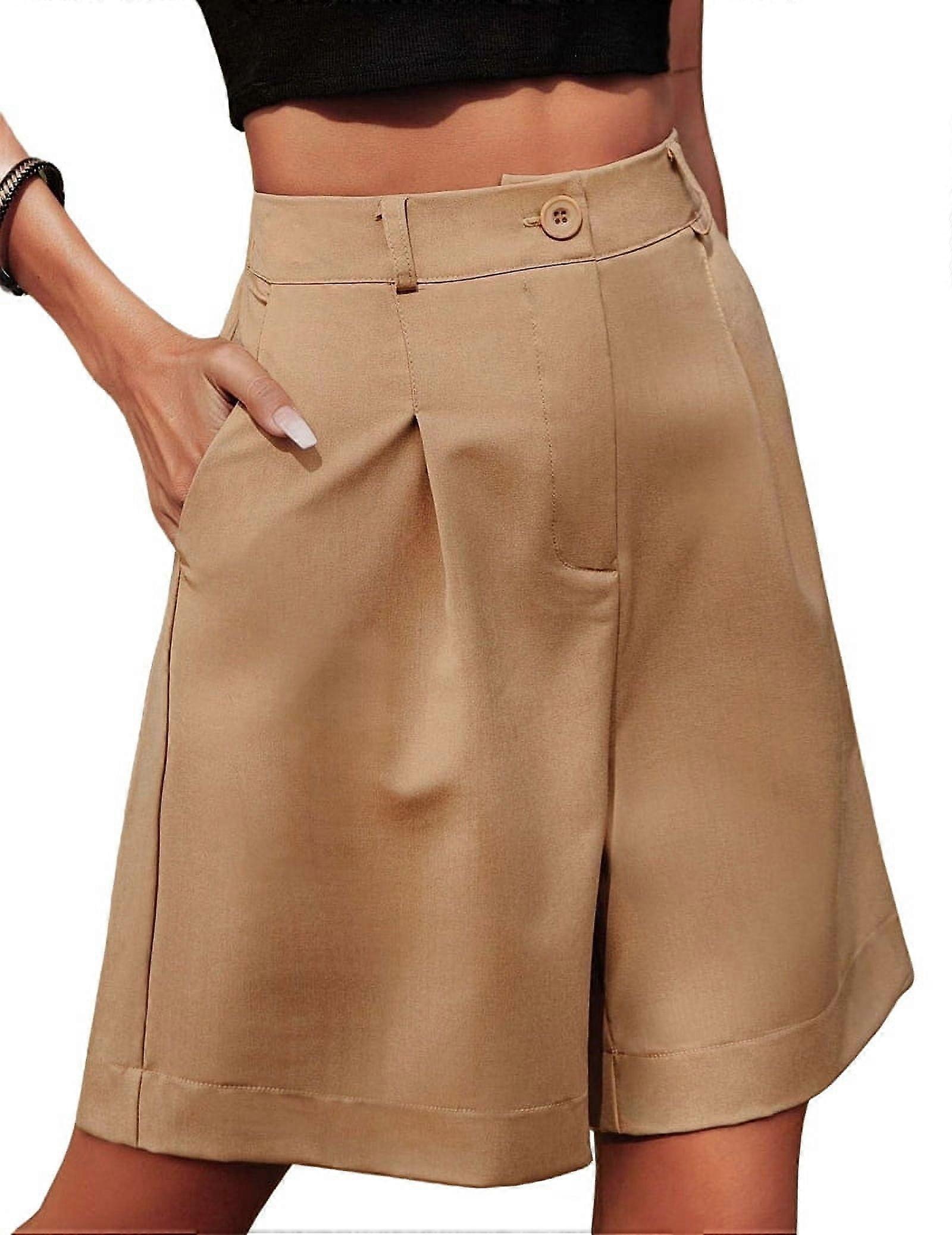 Shorts for Women Dressy 2025 Summer Elastic High Waisted Wide Leg Business Casual Work Shorts with Pockets Camel Color M