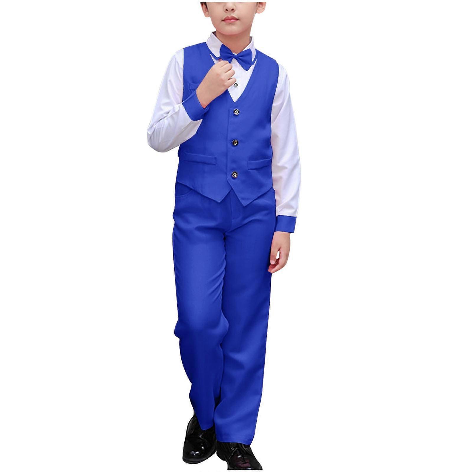 Boys Suit,Boys Summer Outfits,Boy's Solid Color Casual Suit Performance Suit Formal Dress and Wearing A Bow Tie Sets Blue 9-10 Years