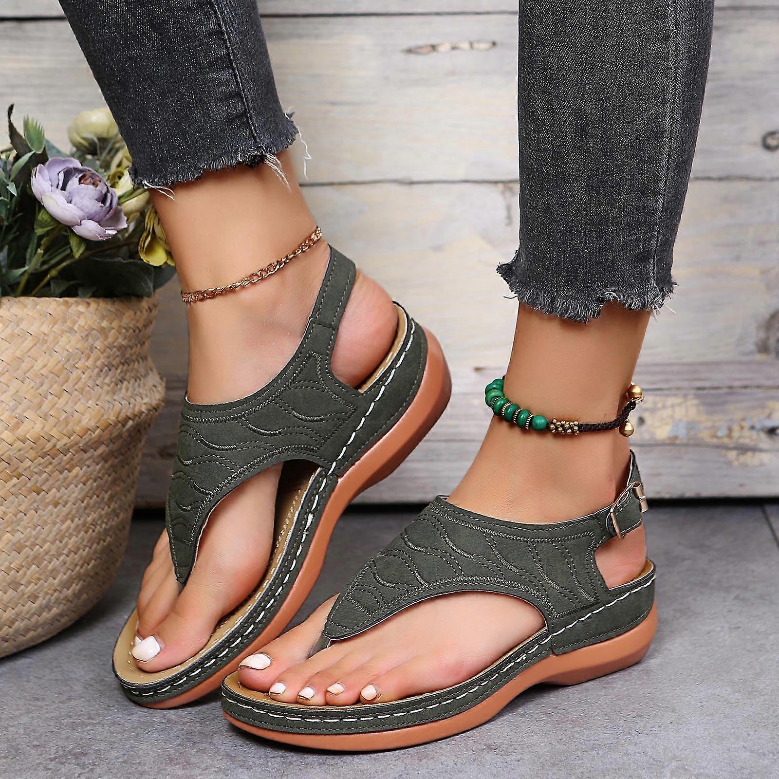 Womens Sandals Summer Ladies Flip-Flops Wedge Heel Slippers Sandals Casual Flip Flops Women's Shoes Wedge Sandals for Women Green 42
