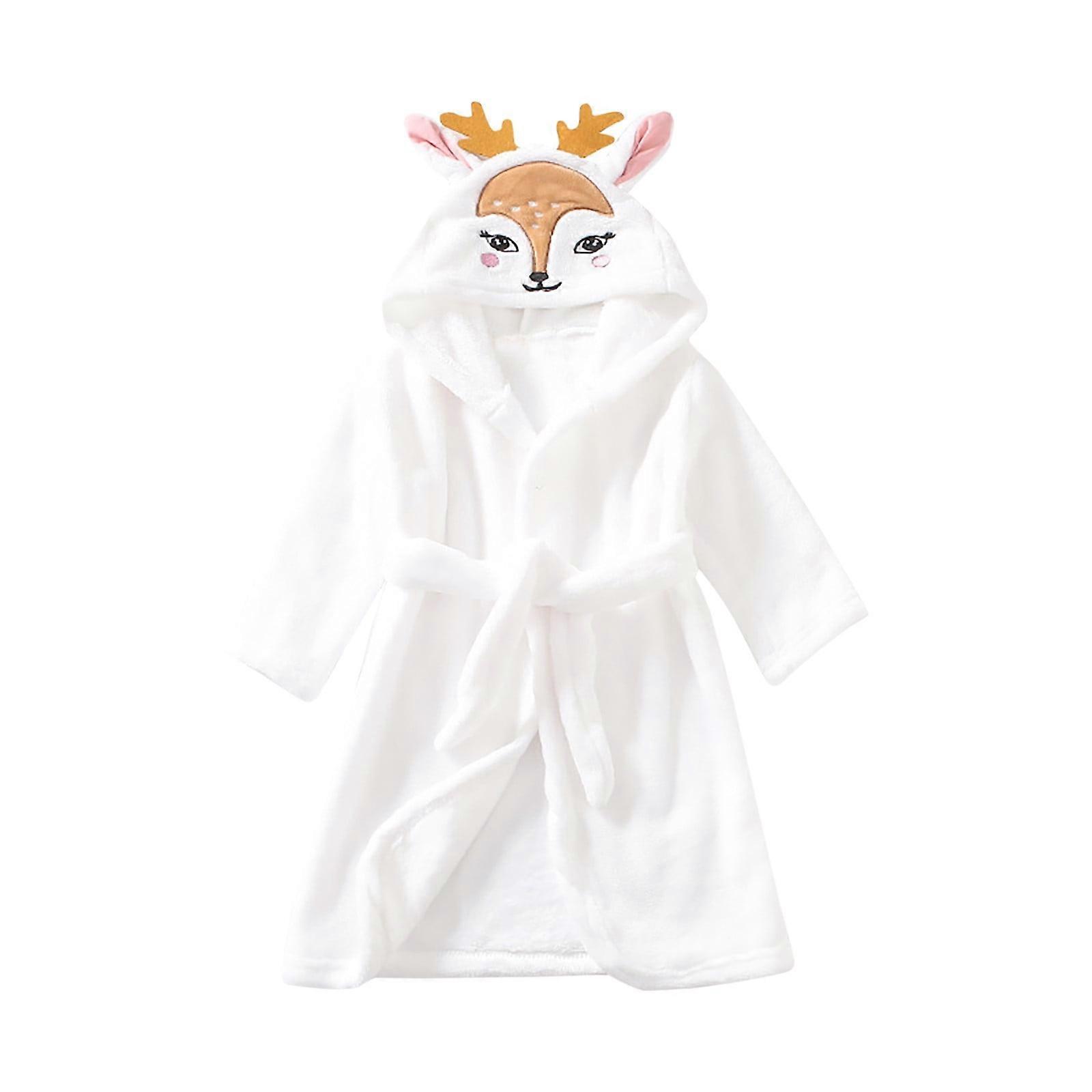 Toddler Baby Girl/Boy Plush Flannel Hooded Bathrobe & PJs Set with Belt, Compatible with Kids 2-6Y