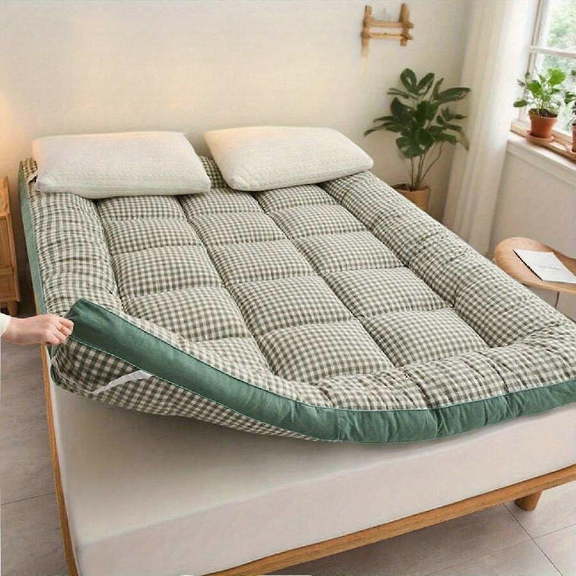 This 2-in-1 mattress topper and futon floor mattress is tailored for summer comfort, with a cooling fabric that effectively regulates body temperature to avoid overheating on hot nights. Its 6-8cm thick premium fiber filling and quilted structure provide soft yet supportive cushioning, ensuring restful sleep whether used as a bed topper (to enhance mattress comfort) or a floor futon (for extra sleeping space). The foldable and roll-up design enables easy storage and carrying—ideal for daily home use, guest rooms, or temporary sleeping scenarios (e.g., overnight guests, small apartments). The classic checked pattern adds a stylish touch to any room, blending practicality with aesthetic appeal. Adopts cooling textile material to reduce heat accumulation, keeping the body cool and dry even in hot summer, avoiding stuffy sleep. Thickened fiber filling (6-8cm) offers strong support for the body, relieving pressure on shoulders, waist, and hips, while maintaining softness for long-term comfort. Works as both a mattress topper (upgrades existing mattress) and a floor futon (for guest rooms, dormitories, or camping), meeting diverse sleeping needs. Folds easily into a compact size and rolls up for storage—saves space in closets or under beds; lightweight for convenient carrying (e.g., moving, outdoor trips). Quilted stitching prevents fiber filling from clumping, ensuring even cushioning; classic checked pattern matches various home decor styles (modern, minimalist, etc. ).