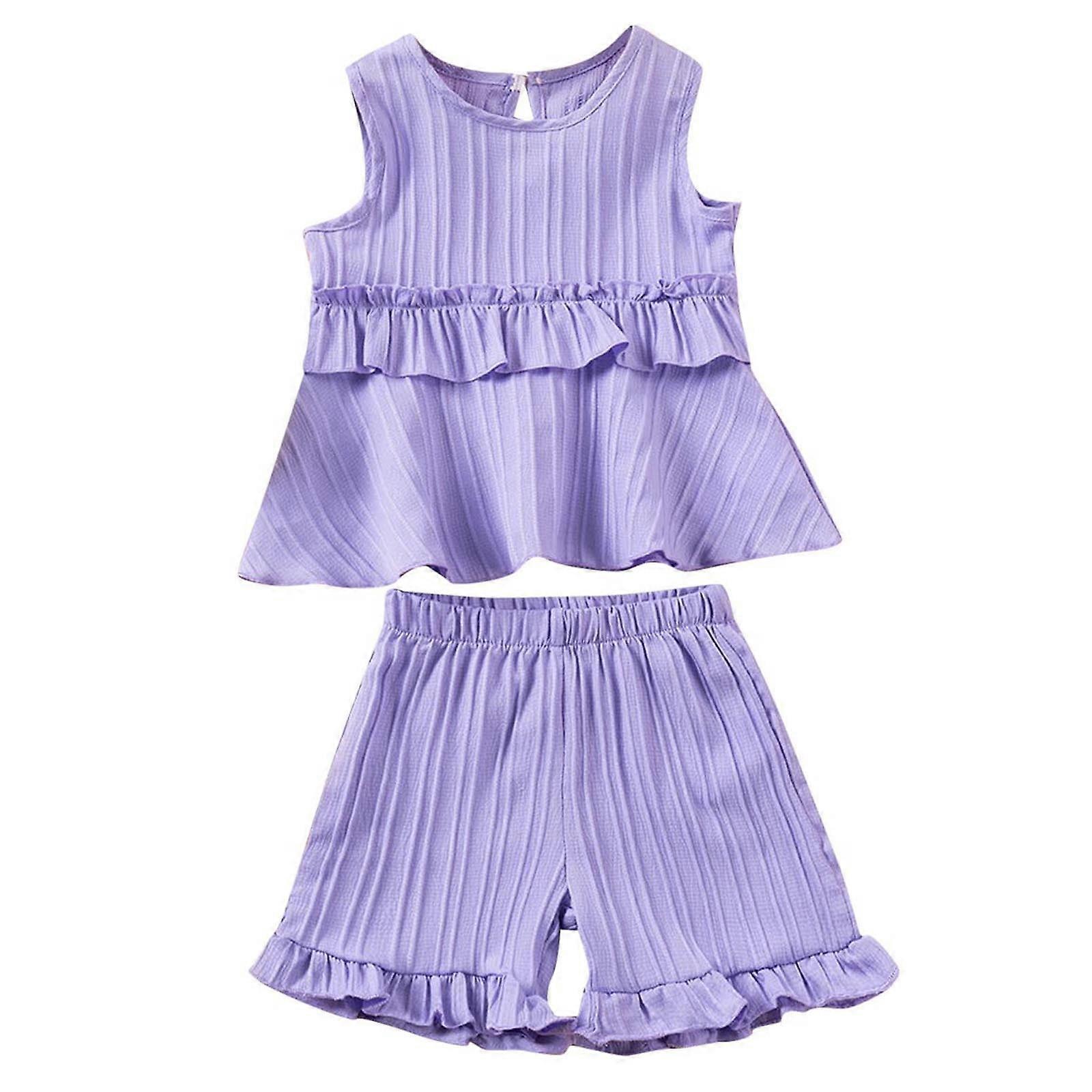 Girl Clothes Girl's 2 Piece Summer Outfits Floral Print Crop Cami Top and Ruffle Shorts Clothing Set Purple Vintage-Style Children’s Outfits