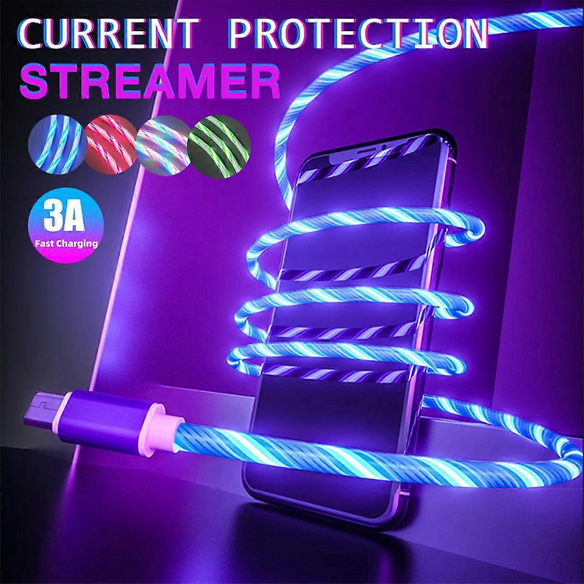 Glowing LED Charging Cable – Micro USB & Type-C, 1m, compatible with Samsung, Xiaomi, iPhone