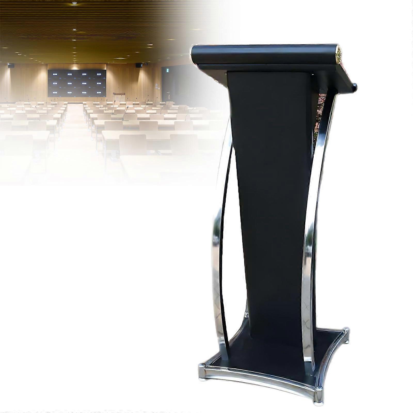 Black Podium Stand with Ergonomic Reading Tilt, AntiRust Stainless Steel Lectern for Church and School
