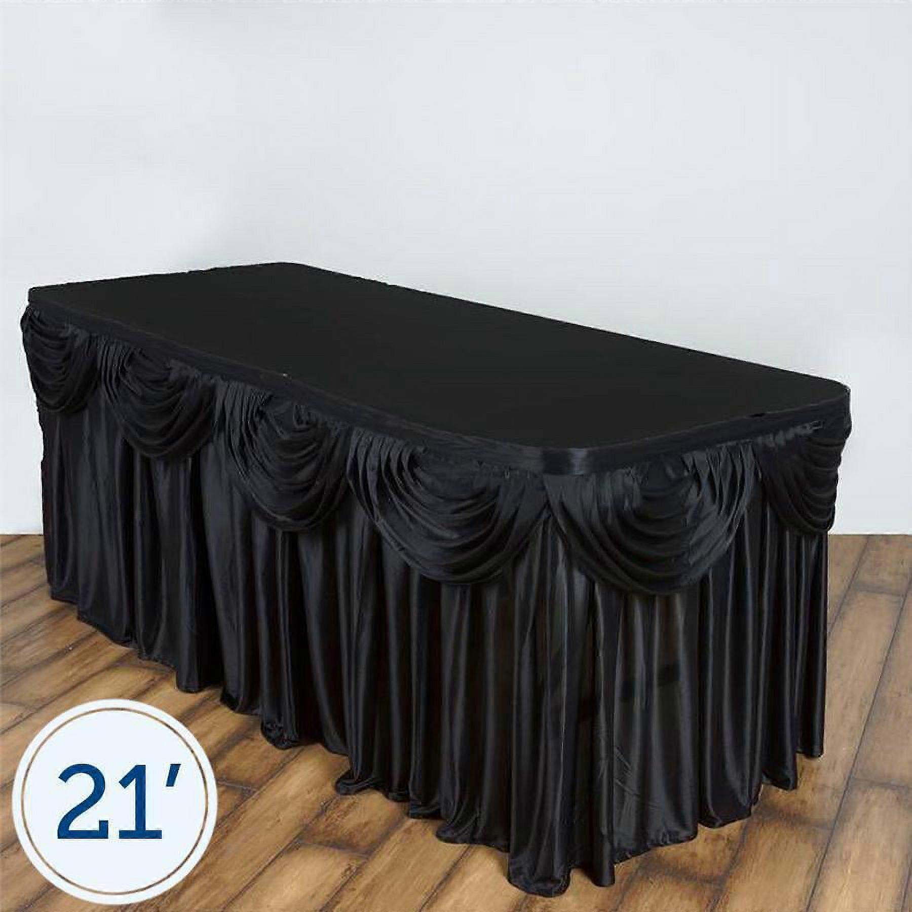 BalsaCircle 21 feet x 29" Satin Drape Banquet Table Skirt Black