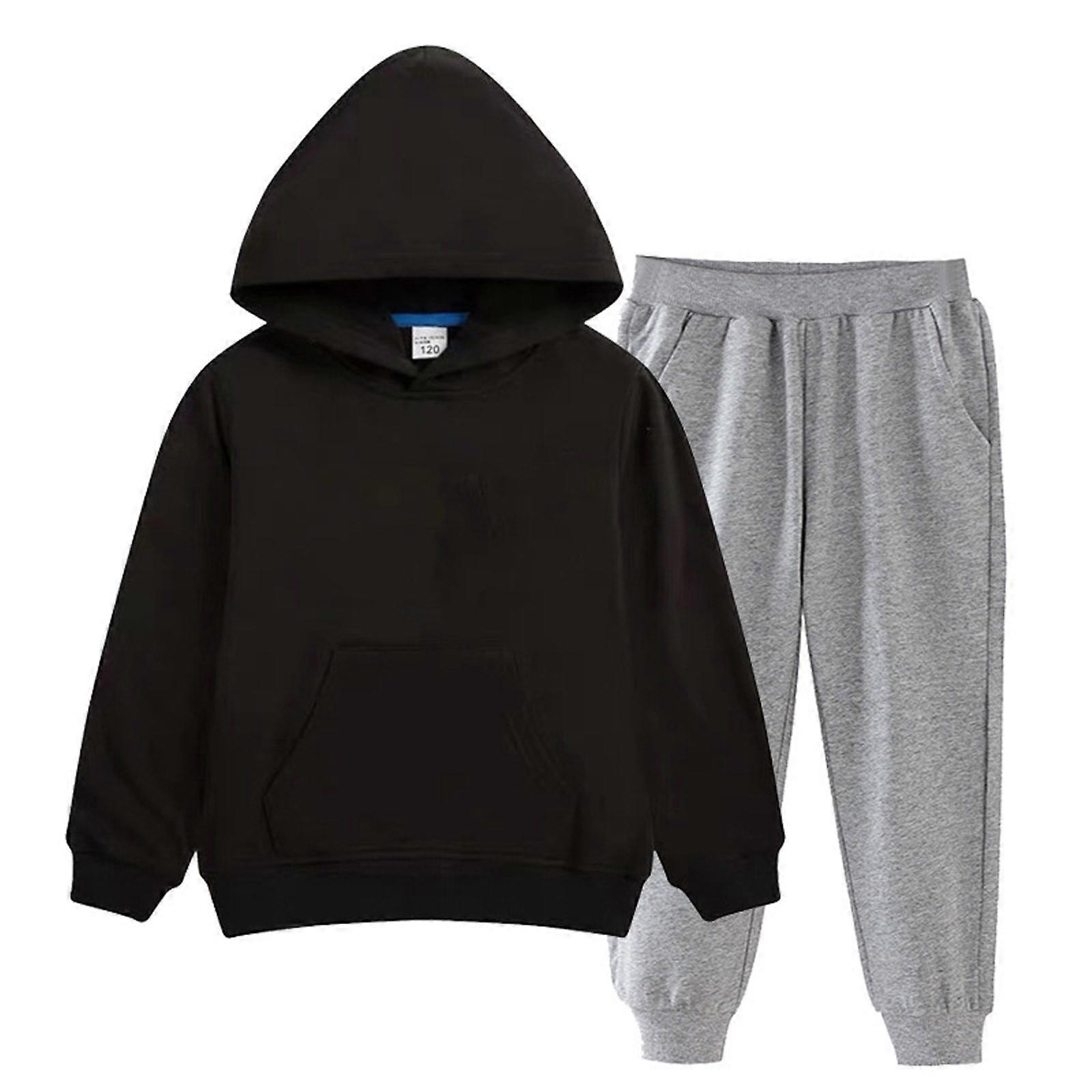 Kids Solid Color Hooded Sweatshirt Set with Fashion Long Pants Fall Winter Soft Two Piece Outfit for Children 2-12 Years(Black#3,3-4 Years)