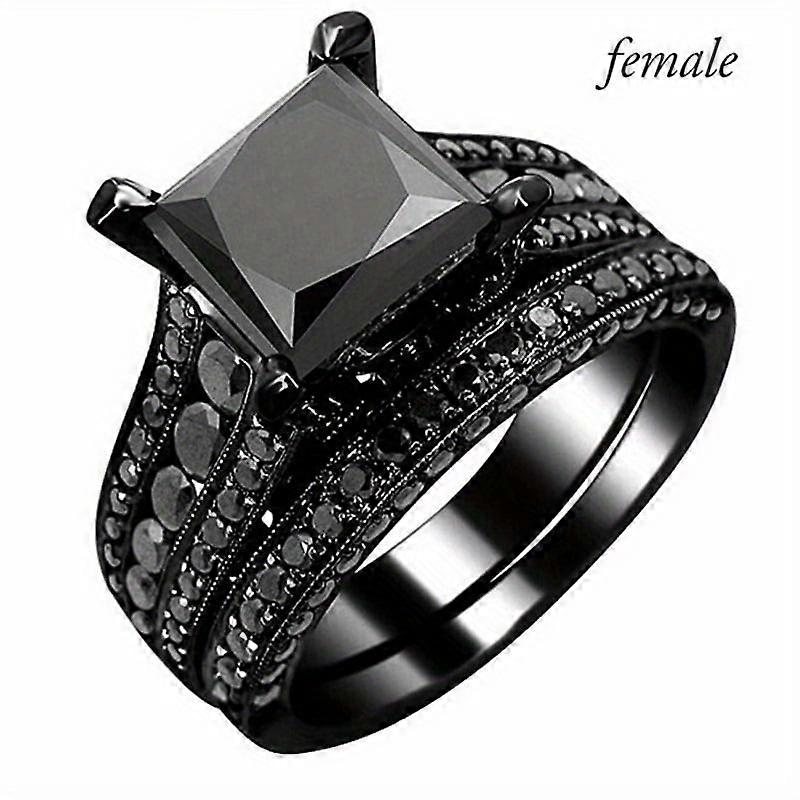 Fashionable Couple Jewelry Couple Rings Black Cubic Zirconia Ring Men's Stainless Steel Anniversary Gifts,Female,10