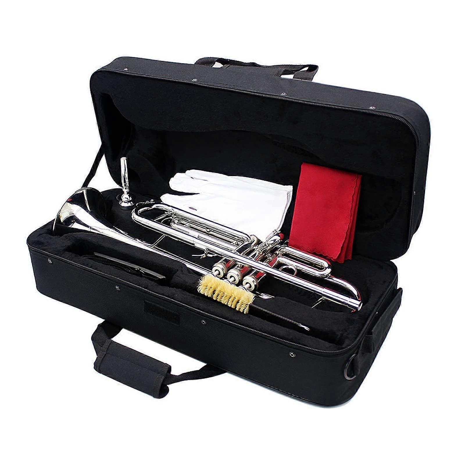 Professional Silver Bb Trumpet with Case Strap and Mouthpiece for Musicians