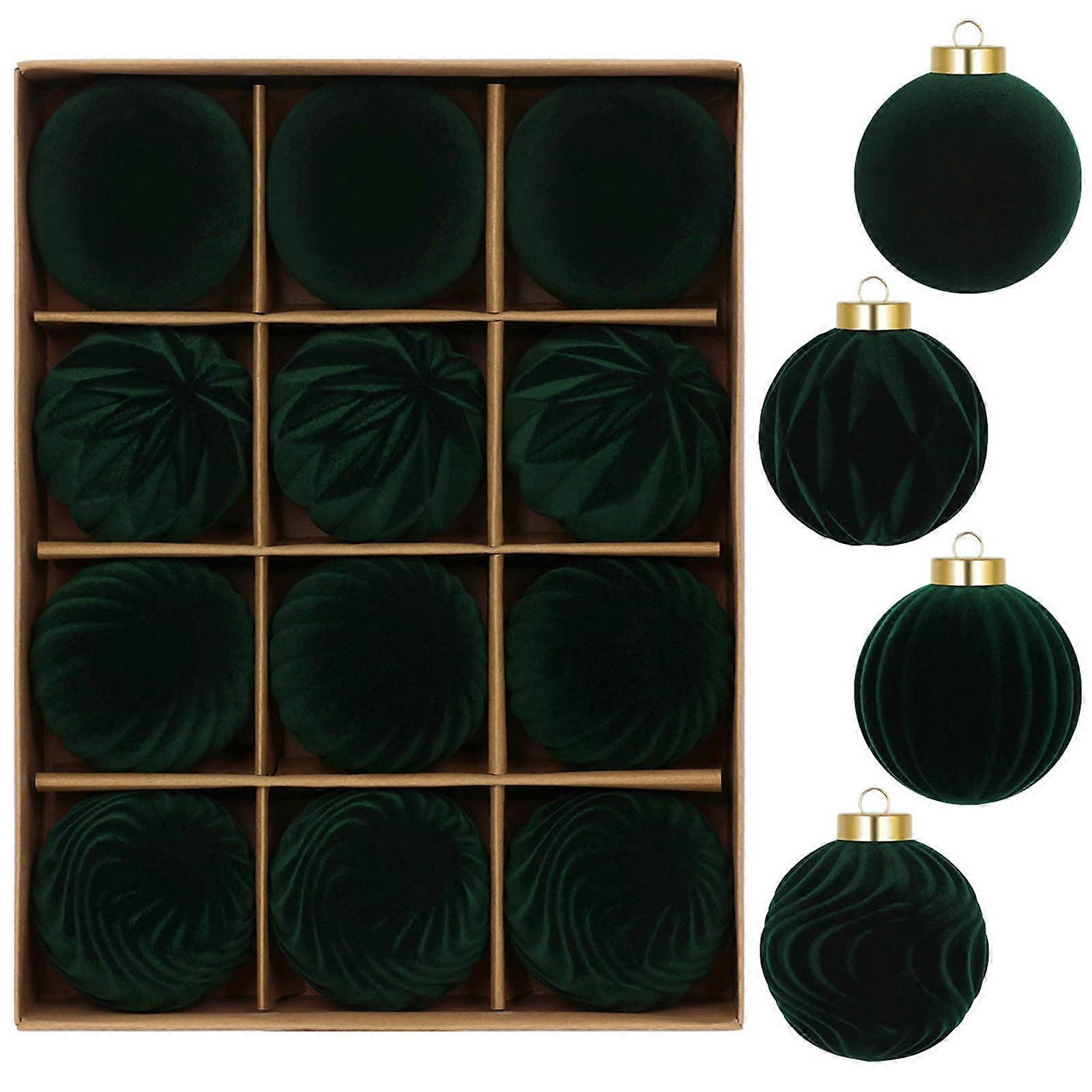 6cm Flocking Dark Velvet Christmas Ornaments, 12pcs Soft Velvet Balls for Tree & Wreath Decor – Compatible with Standard Tree Hooks