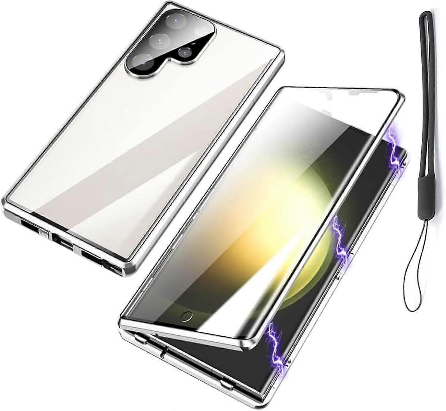 Privacy Magnetic Tempered Glass Case for Samsung Galaxy S25/S24/S23/S22/S21 Series – Anti-Peeping, 360° Protection (S23 Plus, HD-Silver)