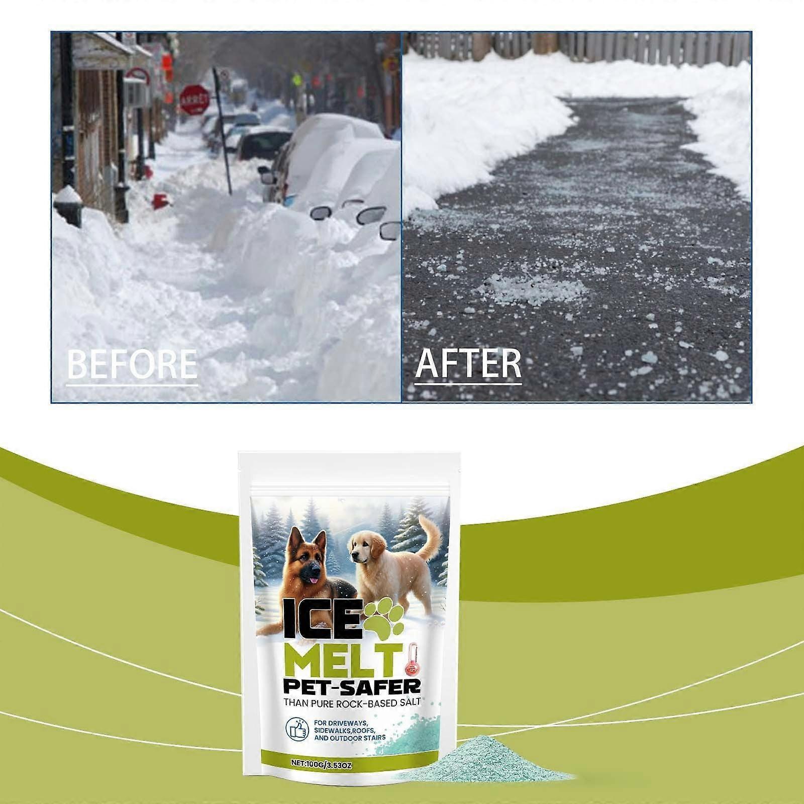 2PCS Thawtful Pet Safe Ice Melt, Fast-Acting Green Granules for Driveway, Concrete & Sidewalk – 100g each, compatible with pets