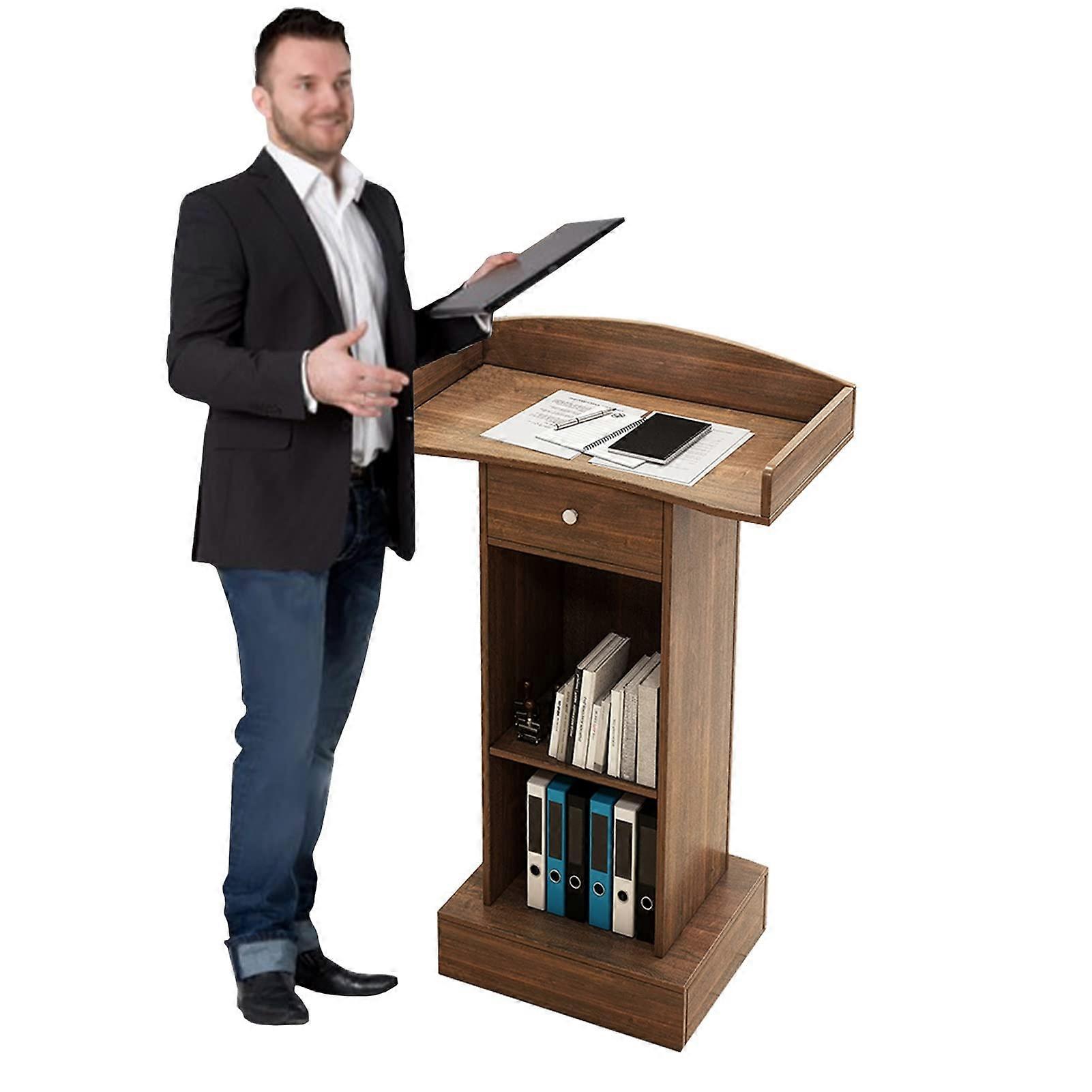 Podium Stand with Angled Reading Surface and Builtin Storage, Lectern Podium for Church, Office, Wedding