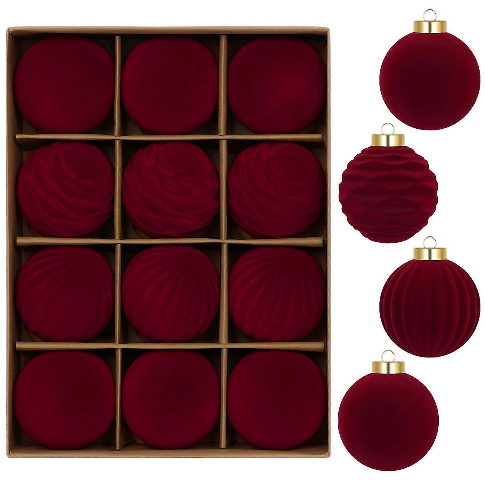 6cm Flocking Dark Velvet Christmas Ornaments, 12pcs Soft Balls for Tree & Wreath Decor