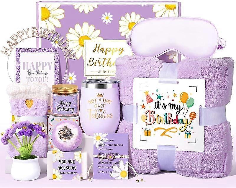 12-Pc Birthday Gift Basket for Women – Relaxing Birthday Box w/ Blanket, Compatible with Her, Mom, Best Friend, Sister, Coworker