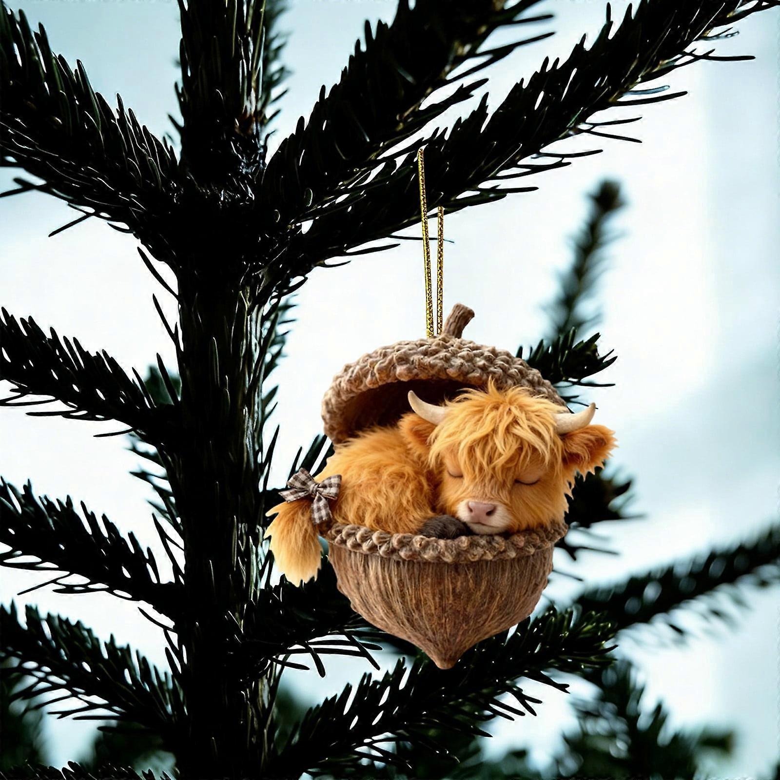 8cm Forest Animal Acorn Ornament, Pine Cone Animal Christmas Decor, 2D Acrylic Home Decor – Compatible with Christmas Trees