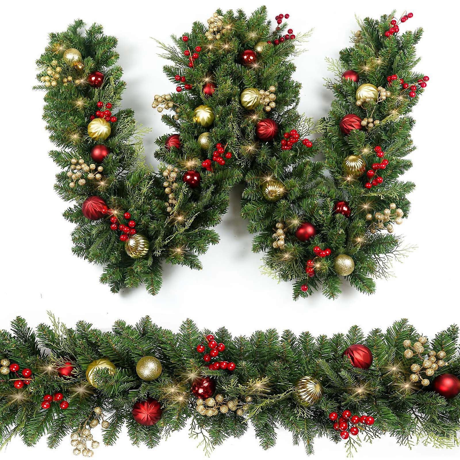 Green PVC Fabric Christmas Tree Ornaments, 1.8m Lighted Vine for Mantle, Stairs, Doorway – Indoor/Outdoor Decor