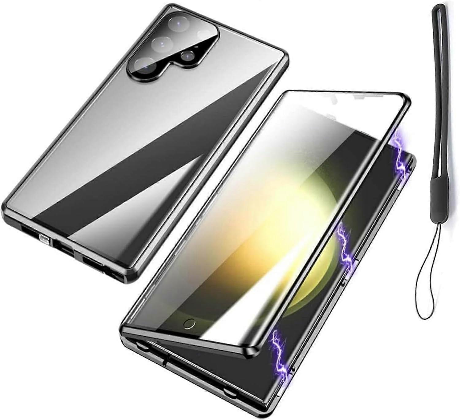 Privacy Magnetic Tempered Glass Case for Samsung Galaxy S25/S24/S23/S22/S21 – Anti-Peeping, 360° Protection (S24, HD-Black)