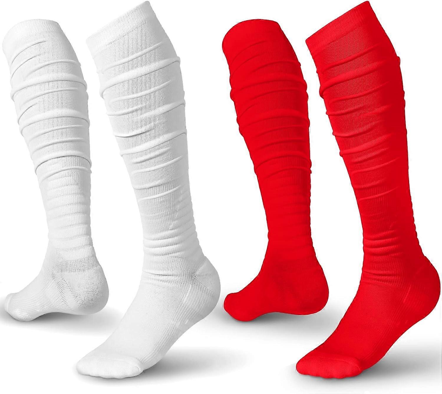 2 Pairs Non Slip Scrunch Football Socks Size Details: Size S/M: for youth; Size L/XL: for adult Package Includes: 2 pairs of anti skid men's long football socks, convenient for replacement and cleaning; The length can be adjusted according to your own needs. Ingenious Style: this football sock is different from other football socks you see, it not only has anti skid grain design, which can help you better gallop the sports football field during sports. Anti Slip Design: the considerate designs are made at the soles of the feet, heels, legs and ankles, which can effectively reduce slipping, and our socks will be thicker in those vulnerable places, helping you perform well in activities. Quality Material Selection: our football socks are made of quality cotton and polyester, sturdy and resilient, strong against breakage, serving you for a long time; They are suitable for most people of different height and weight, ideal for various outdoor sports.