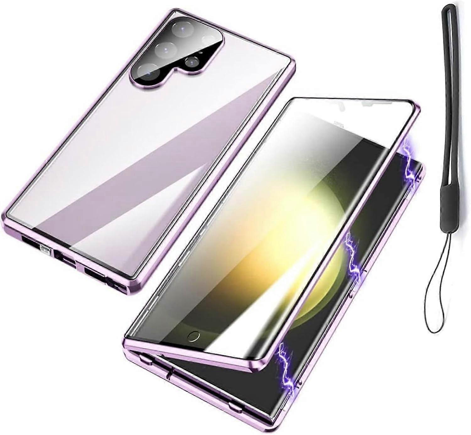 Privacy Magnetic Tempered Glass Case for Samsung Galaxy S25/S24/S23/S22/S21 – Anti-Peeping, 360° Protection (S23 Plus, HD-Purple)