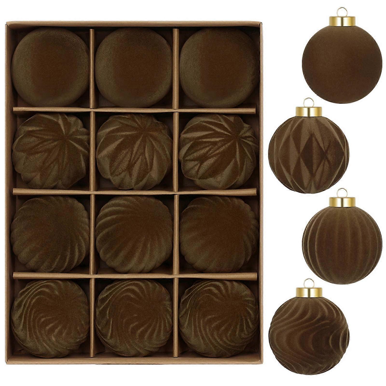 6cm Flocking Dark Velvet Christmas Ornaments, 12pcs Soft Velvet Balls for Tree & Wreath Decor – Compatible with Holiday Home Decor