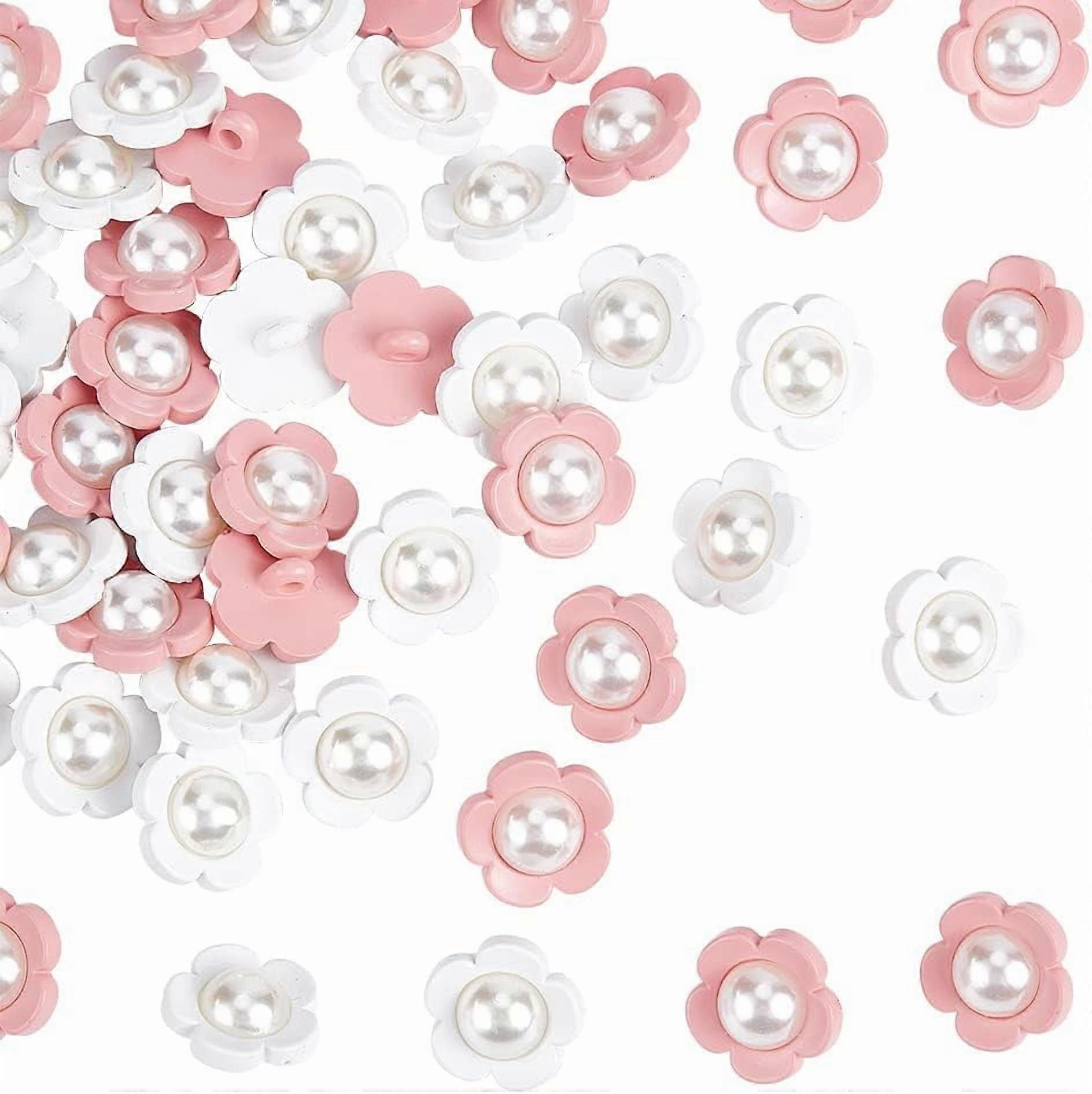 50pcs 17mm Pearl Buttons (White/Pink), Flower Shank, Sew-in Imitation Pearl Buttons for Clothes, Coats, Sweaters – Compatible with DIY Crafts