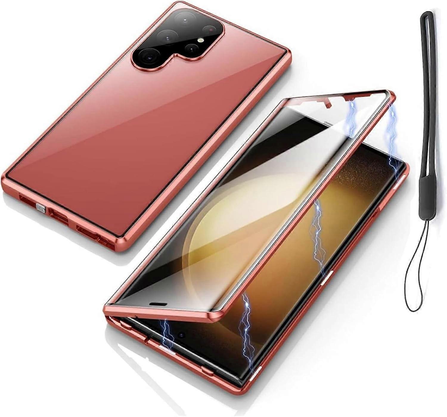 Privacy Magnetic Tempered Glass Case for Samsung Galaxy S25/S24/S23/S22/S21 – Anti-Peeping, 360° Protection (S24, HD-Red)