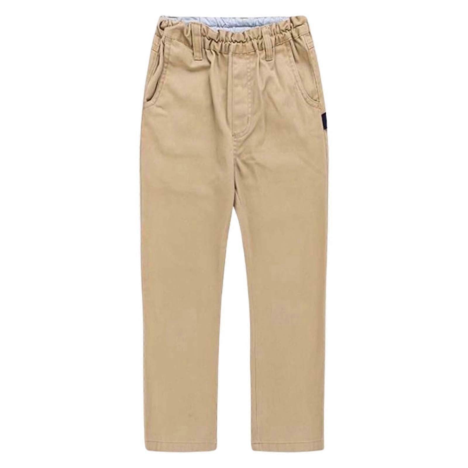 Boys School Uniforms Pants Solid Color Elastic Waist Straight Leg Dress Trousers With Pockets Toddler Trendy Wedding Pants,Khaki,10-11 Years