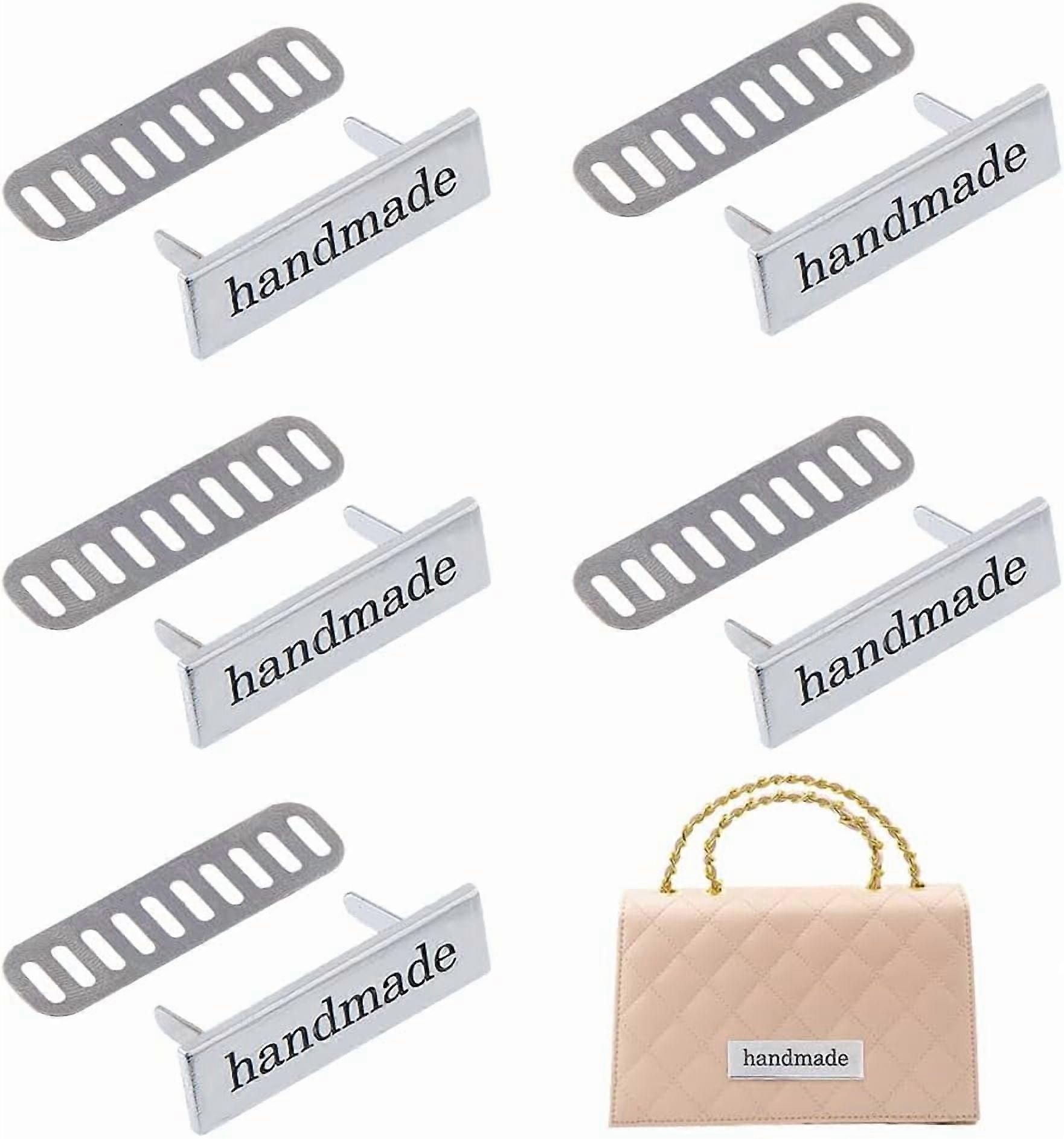 16PCS Platinum Handmade Metal Label Tags 1.2x4cm for DIY Sewing Crafts, Compatible with Purse & Accessories