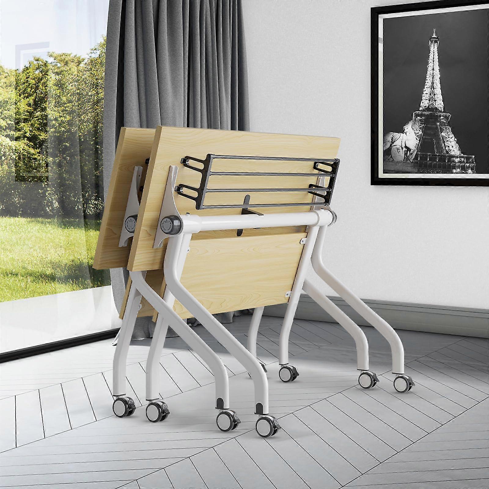 Folding Conference Table with Wheels, Modern Wood Office Meeting Table for 210 People, SpaceSaving Design