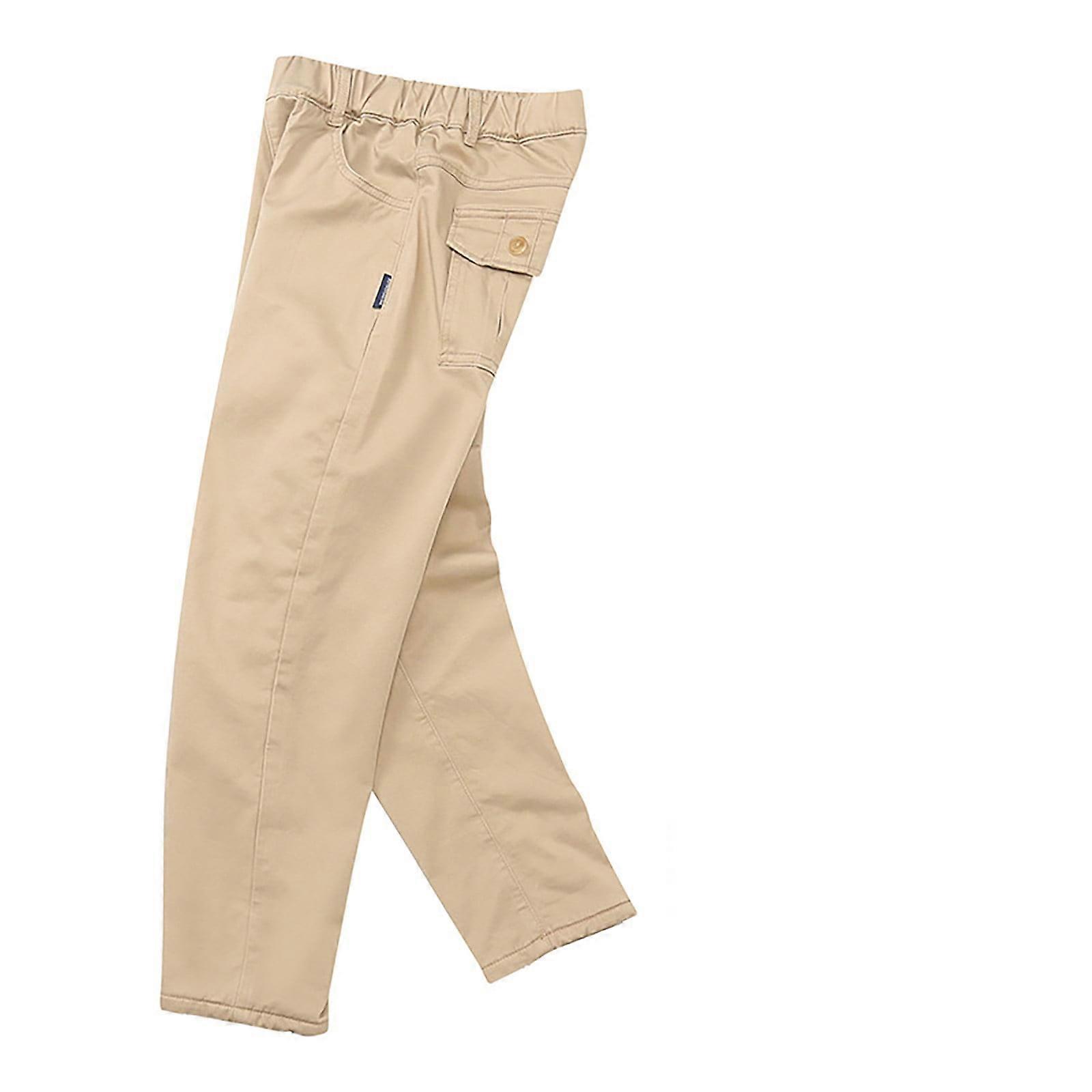 Boys' School Uniform Pants, Khaki, 5-6Y: Stretch, Thickened, Elastic Waist, Wide Leg, Pockets – Compatible with Standard School Dress Codes