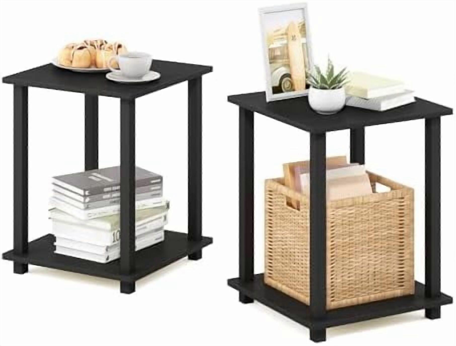 SIMPLISTIC Side Table Set of 2, 2-Tier End Table, Nightstand, Night Stand, Bedside Table, Easy Assembly, for Living Room, Bedroom, Americano