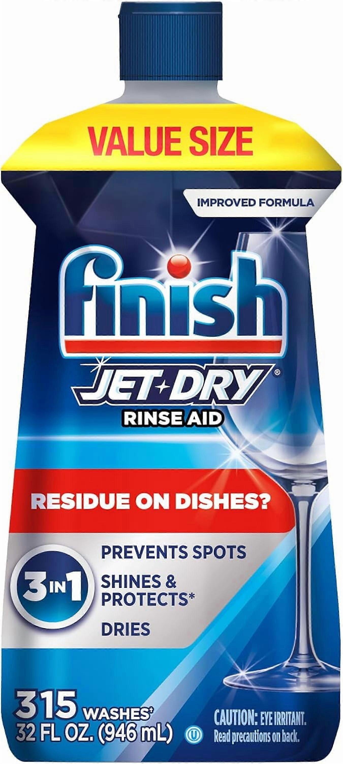 Jet-Dry Dishwasher Rinse Aid, Compatible with Dishwasher Detergent, Prevents Spots & Residues, Dries, Shine & Protects, 32 oz, 315 washes
