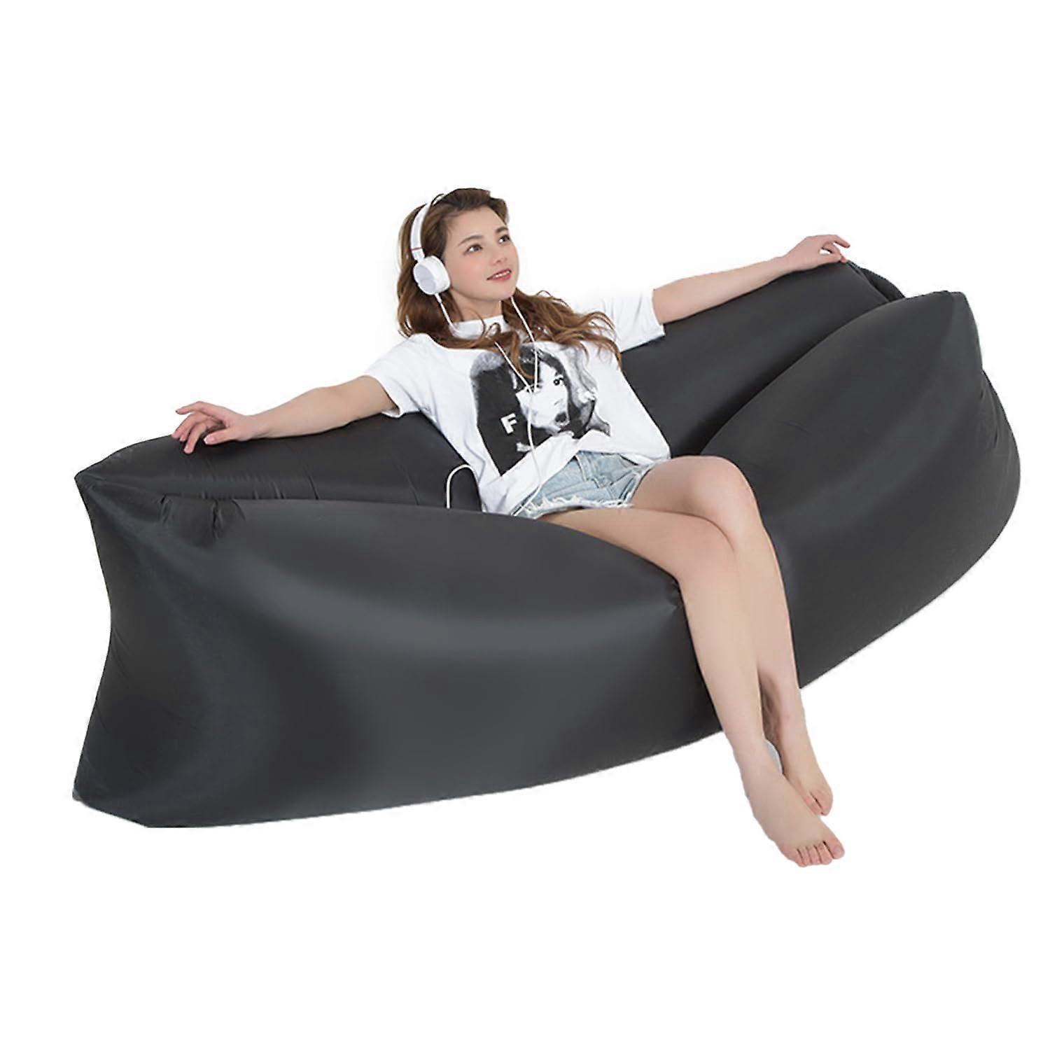 Inflatable Lounger Air Sofa with Pump Inflation, Waterproof Ergonomic Design for Camping Beach Travel Black