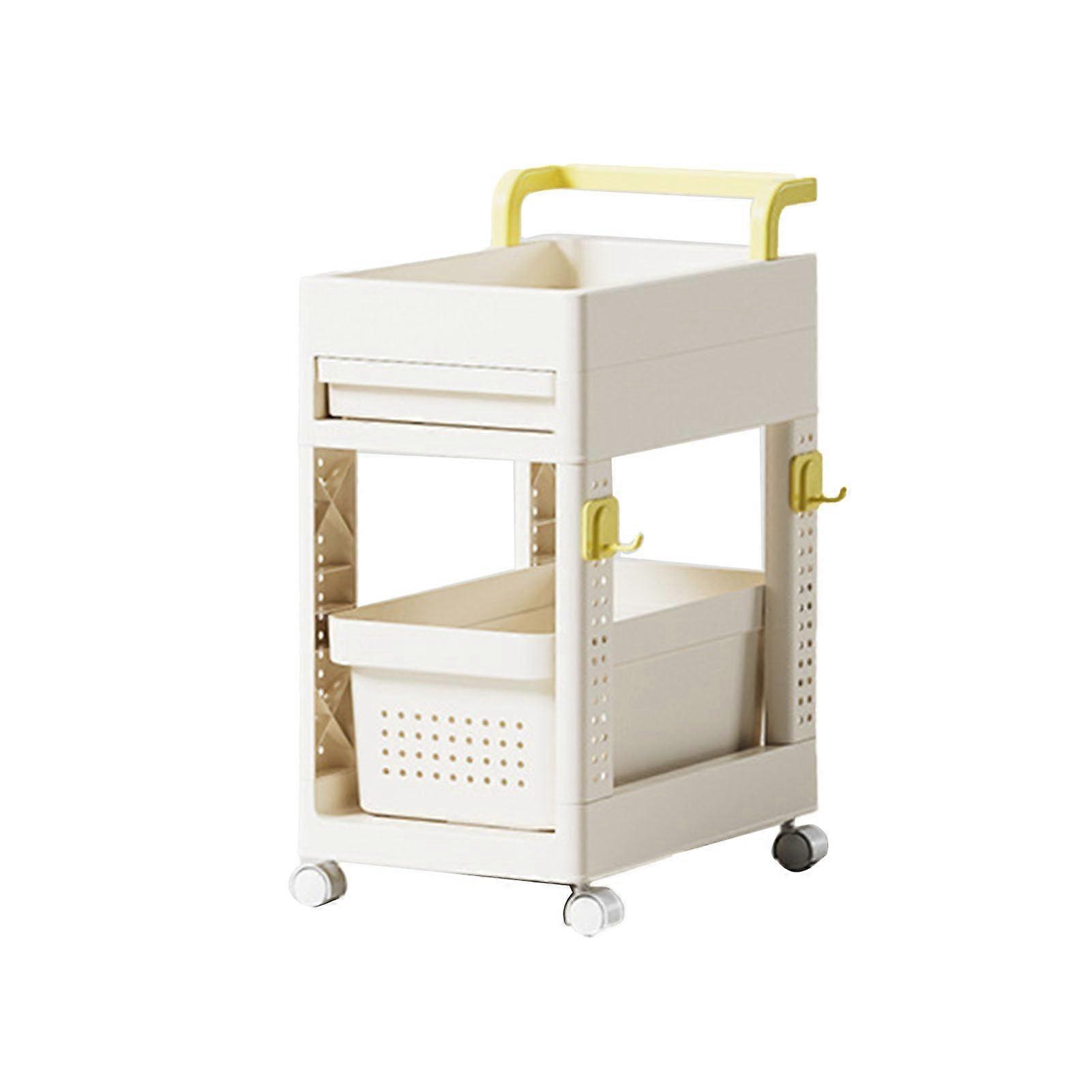 Size: with Drawer Item Type: Storage Cart Material: Plastic Overview A compact, mobile storage cart designed to desktop space and keep daily supplies organized. The plastic construction is lightweight and easy to clean, while the included drawer and open compartments provide flexible storage for a variety of items. Key benefits Saves space: Compact underdesk design uses wasted floor space to keep work and living areas tidy. Improves efficiency: Keeps folders, book bags, snacks, and frequently used items within reach so you can work or study without clutter. Portable and flexible: Equipped with wheels for easy repositioning across rooms or workspaces. Simple, versatile styling: Neutral, minimal design fits a range of interiors and keeps the room looking neat. Features Size: with Drawer for additional concealed storage Material: Durable plastic that is lightweight and easy to wipe clean Mobility: Wheels allow quick relocation without lifting Multifunctional: Suitable for books, stationery, snacks, folders, craft supplies, toiletries, and more Space saving: Slim profile fits under tables and desks to maximize usable surface area Included in package 1 x Storage Cart Practical use scenarios Home office: Store files, chargers, notebooks, and snacks under your desk to maintain a clear workspace and faster access to essentials. Student dormitory: Keep textbooks, stationery, and items organized in a small room where floor and desk space are limited. Classroom or shared workspace: Use the cart to hold teaching materials, paper supplies, or shared snacks for easy distribution and tidy storage. Additional note Manual measurement may result in slight size variations.