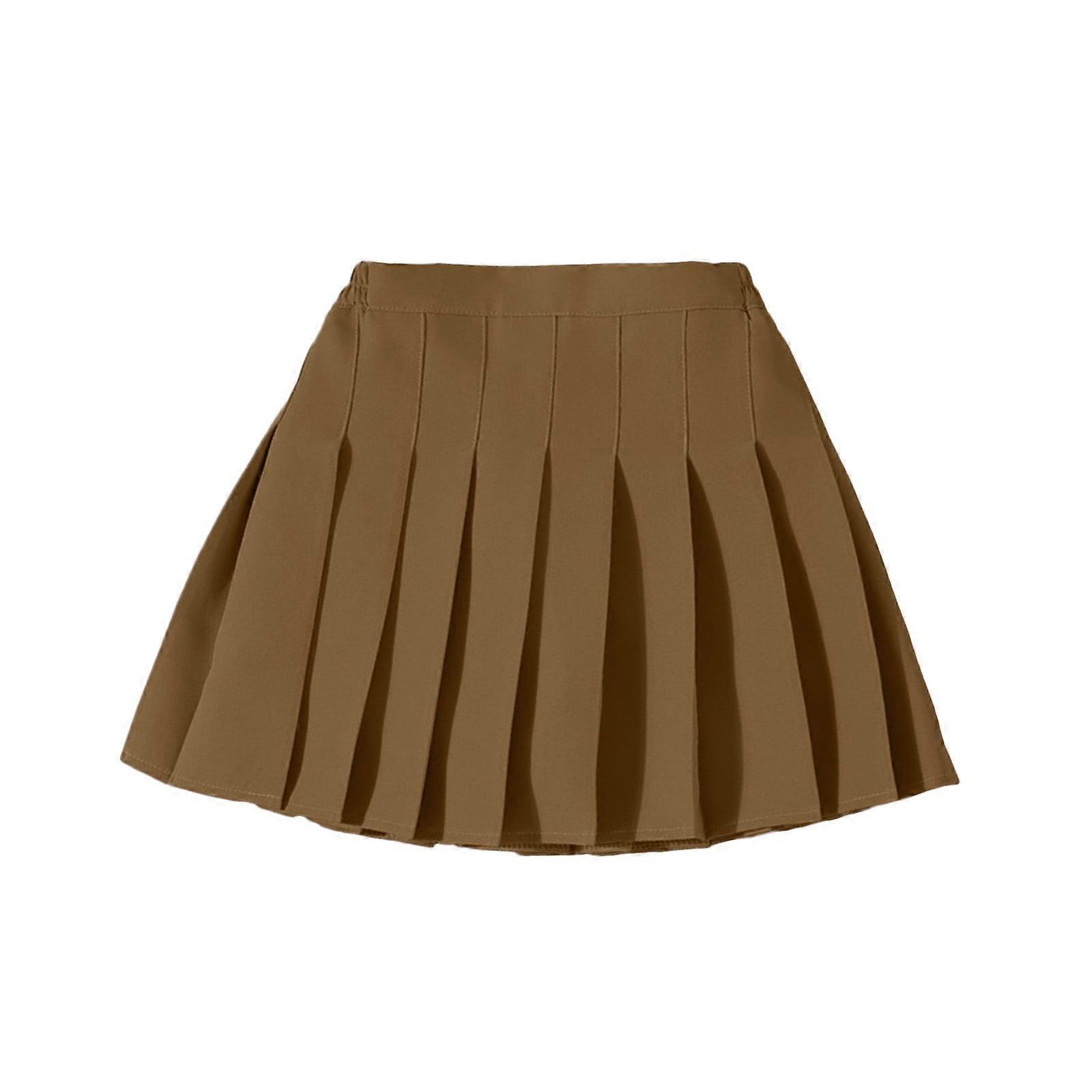 Girls School Uniforms Skirts Solid Color Elastic High Waist A-Line Pleated Tennis Skirt Stylish Birthday Wedding Weekend Skorts,Coffee,4-5 Years