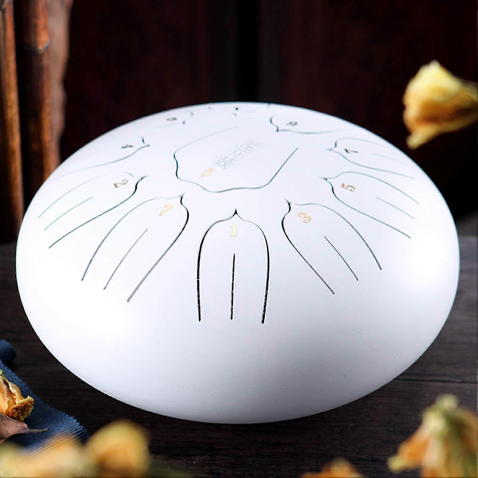 12 Inch 11 Notes Steel Tongue Drum White Handpan with Mallets and Bag for Beginners and Adults