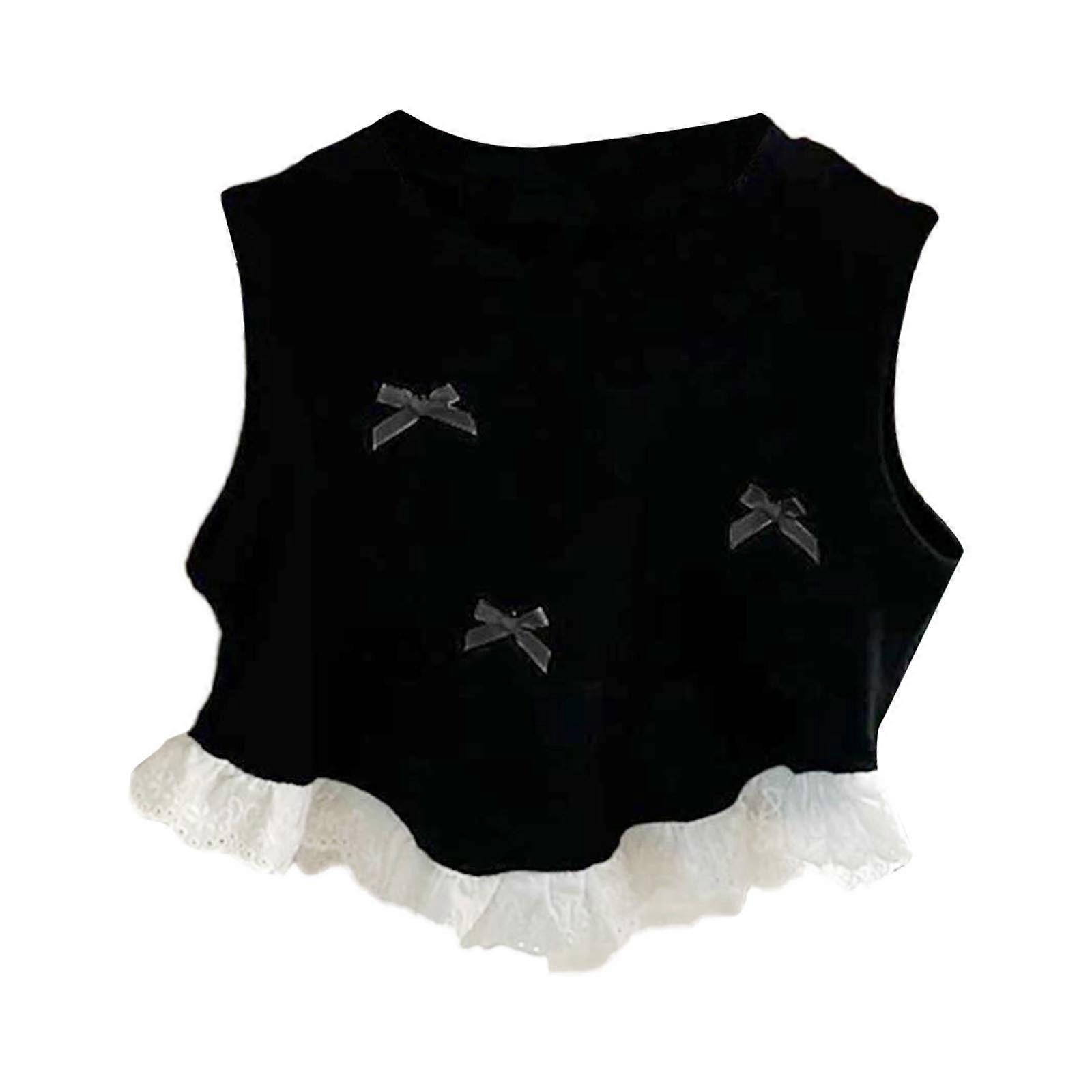 Toddler Girls Tank Tops Spring/Summer Girls Bow Short Vest Baby Lace Patchwork Sleeveless Tank Top Ruffle Trendy Camisole Tops 5-6 Years
