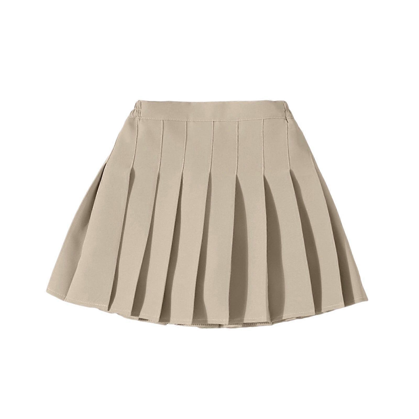Girls School Uniforms Skirts Solid Color Elastic High Waist A-Line Pleated Tennis Skirt Girl Casual Birthday Wedding Weekend Skorts,Khaki,5-6 Years
