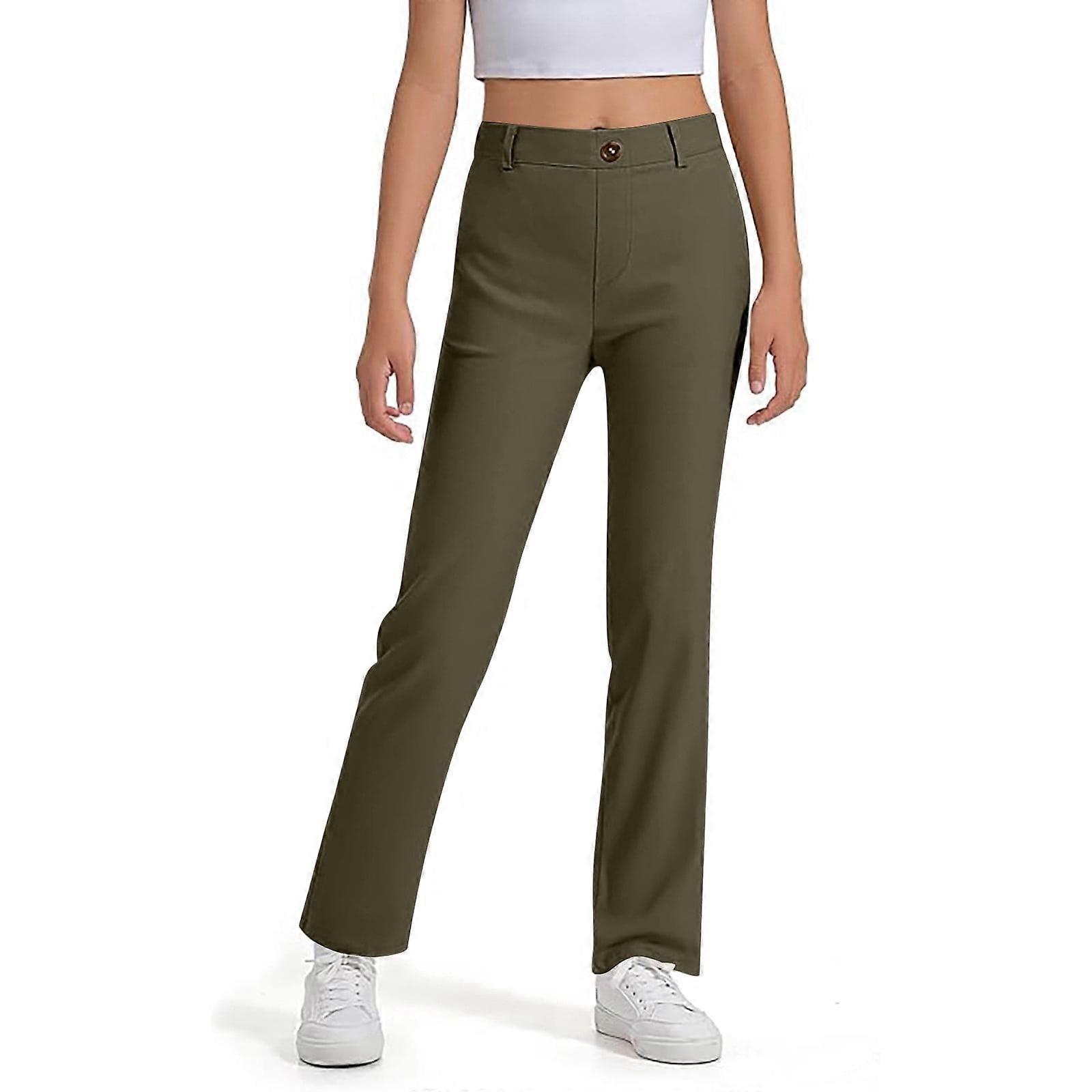 Girls' Stretch Uniform Pants, Straight Leg Twill Slacks with Pockets, Comfortable School Pants for Ages 5-6
