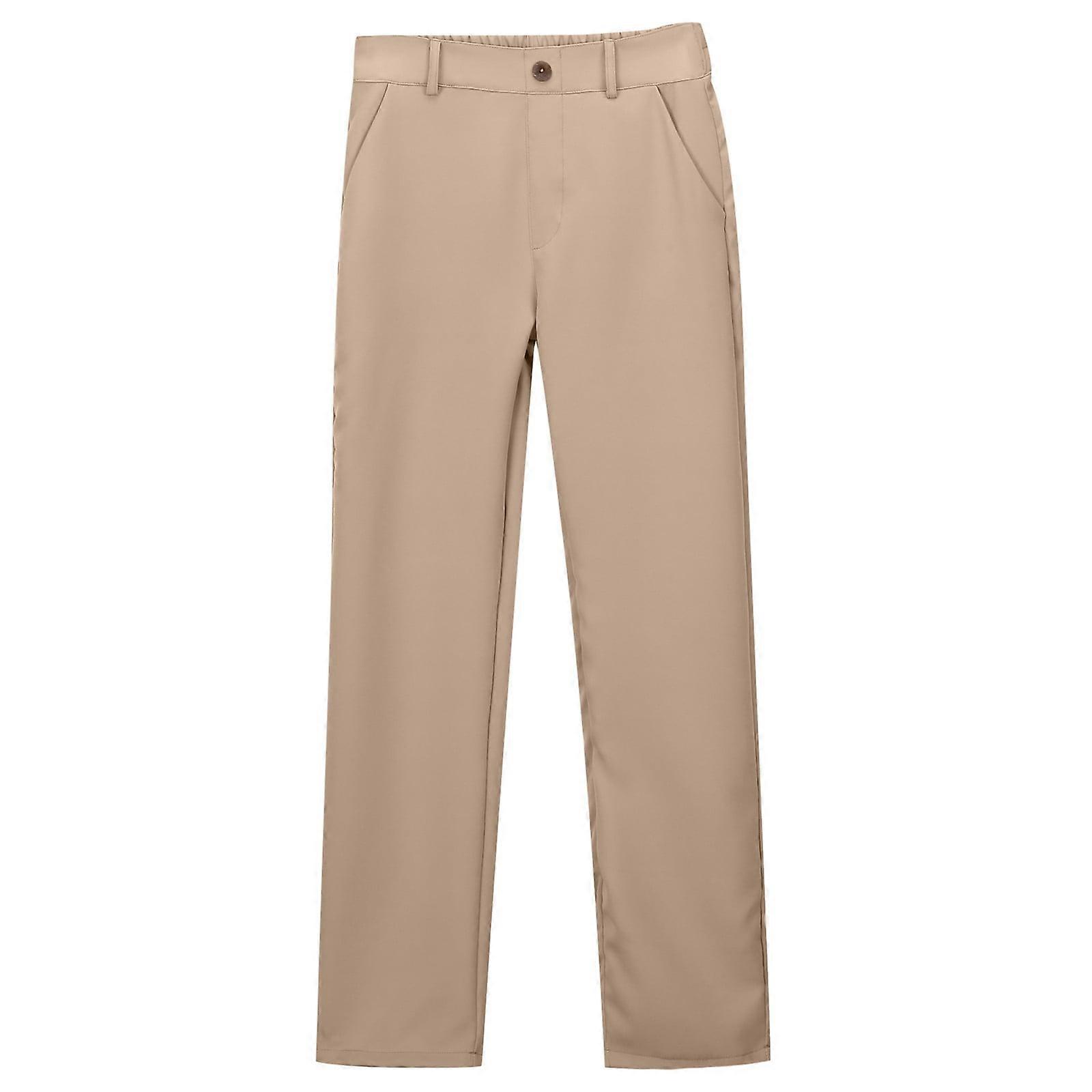 Girls Uniform Pants Fall Winter Solid Color High Waist Straight Dress Trousers Child Elegant Holiday School Party Pants,Khaki,15-16 Years