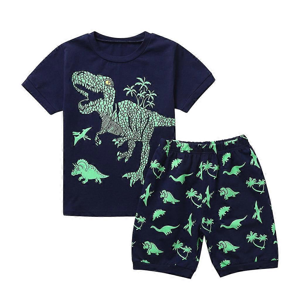 TAIAOJING Toddler Baby Boy Summer Outfit Set Print Dinosaur Pajamas Shorts Boys Tops Pants Kids Sleepwear Boys Outfits&Set