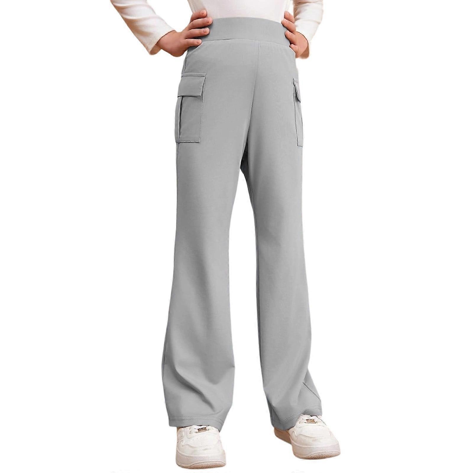 Girls Uniform Pants, Grey, 9-10 Years – Elastic High Waist, Side Pocket, Flare Trousers for Fall/Winter, Compatible with School Uniform