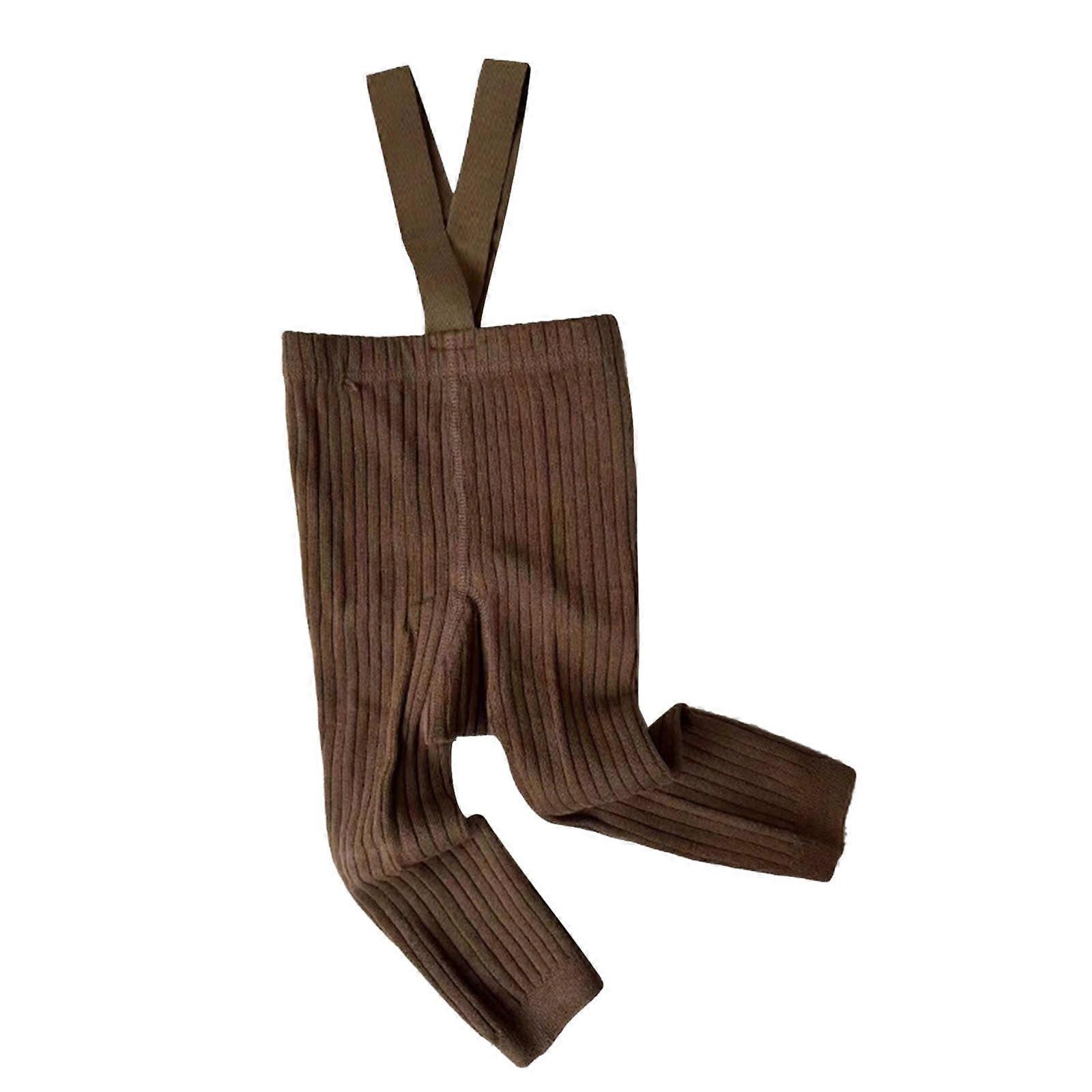Girls Boys Pants Solid Color Leggings Suspenders Pants Toddler Stylish Birthday Trousers,Coffee,3-5 Years