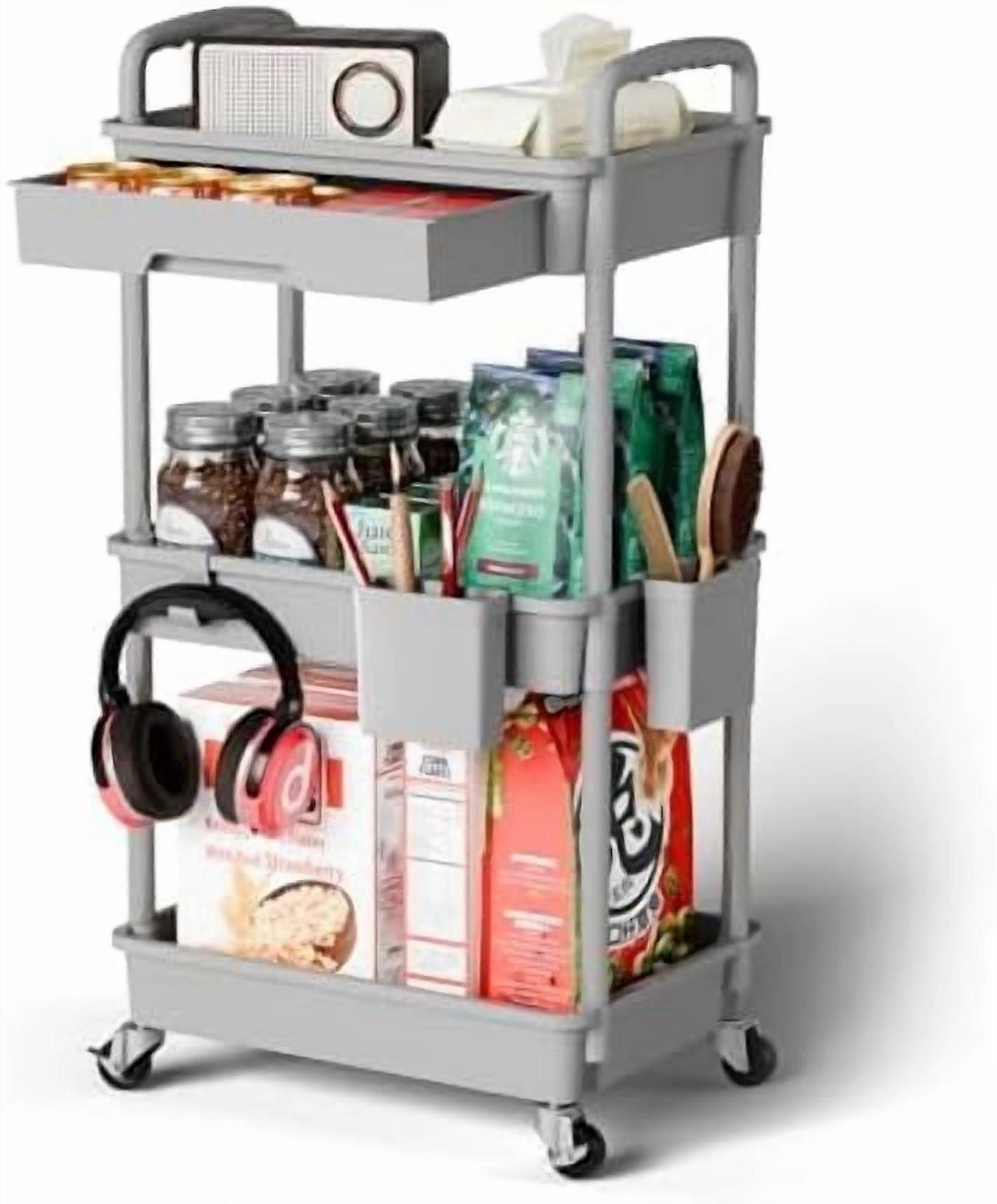 3-Tier Rolling Cart Organizer with Wheels – Grey, Compatible with Laundry, Bathroom, Office, Kitchen & More