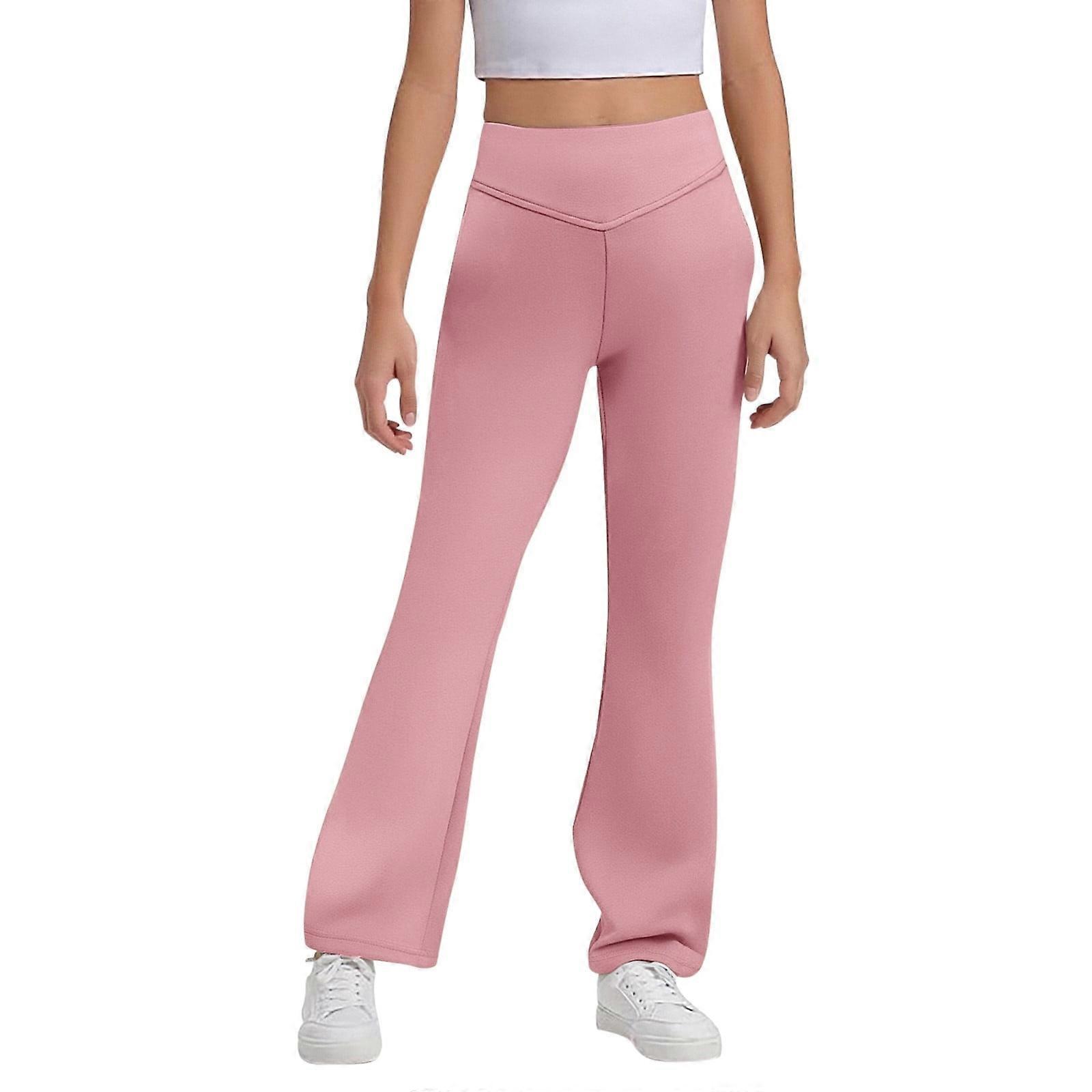 Girls School Uniform Pants Solid Color Stretch Elastic High Waist Slim Fit Flare Pants Child Stylish Vacation Dress Trousers,Pink,13-14 Years