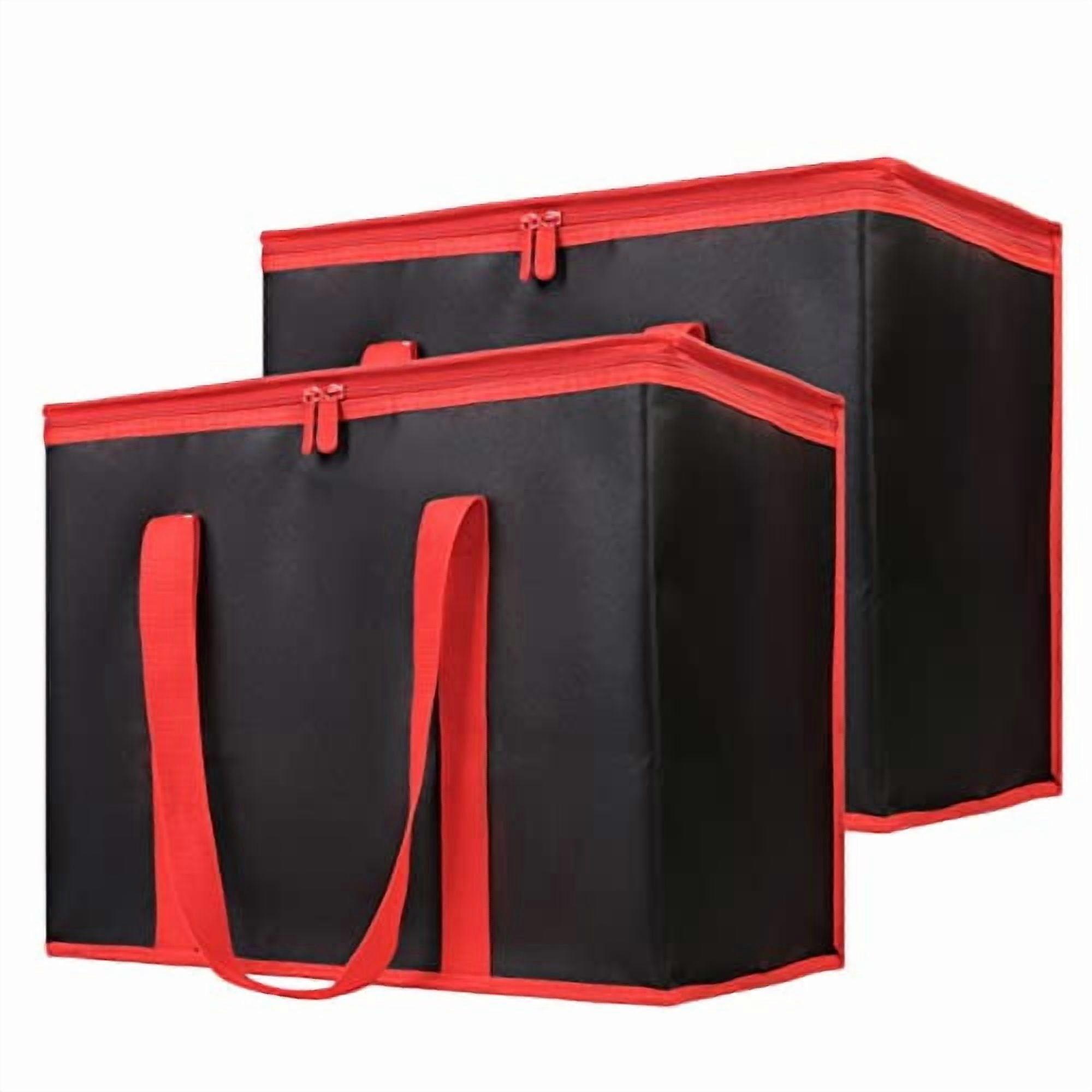 1-Pack Insulated Reusable Grocery Shopping Bags, X-Large Picnic Cooler Bag with Top Cold, Insulated Food/Pizza Delivery Bag (Black-Red Edge)