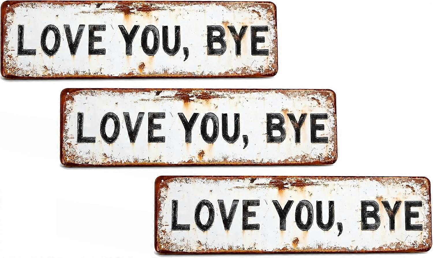 OVE YOU, BYE – Vintage Metal Wall Sign Above Door, Aluminum Farmhouse Rustic Decor Plaque for Entryway Hallway Home Bar Cafe Wall Art